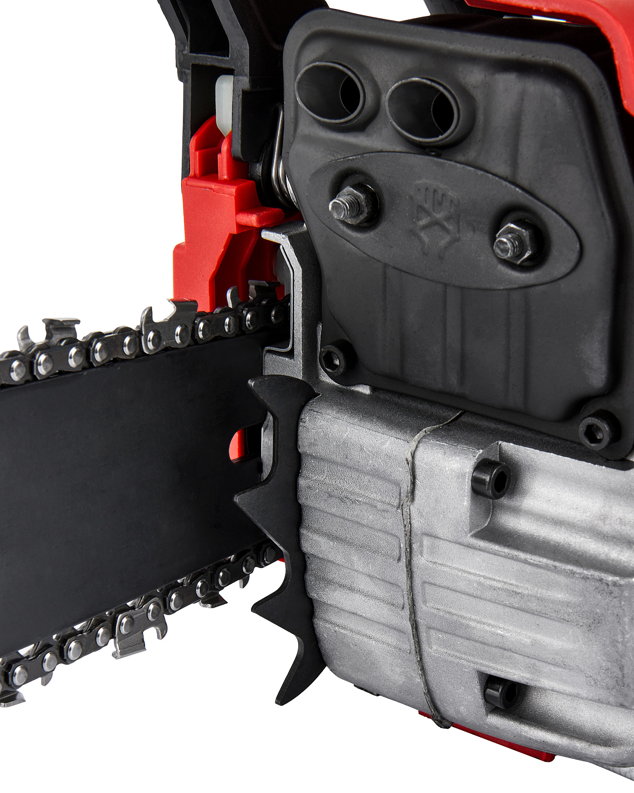 на сортименты, пиления дров. Цепная пила оснащена двухтактным двигателем