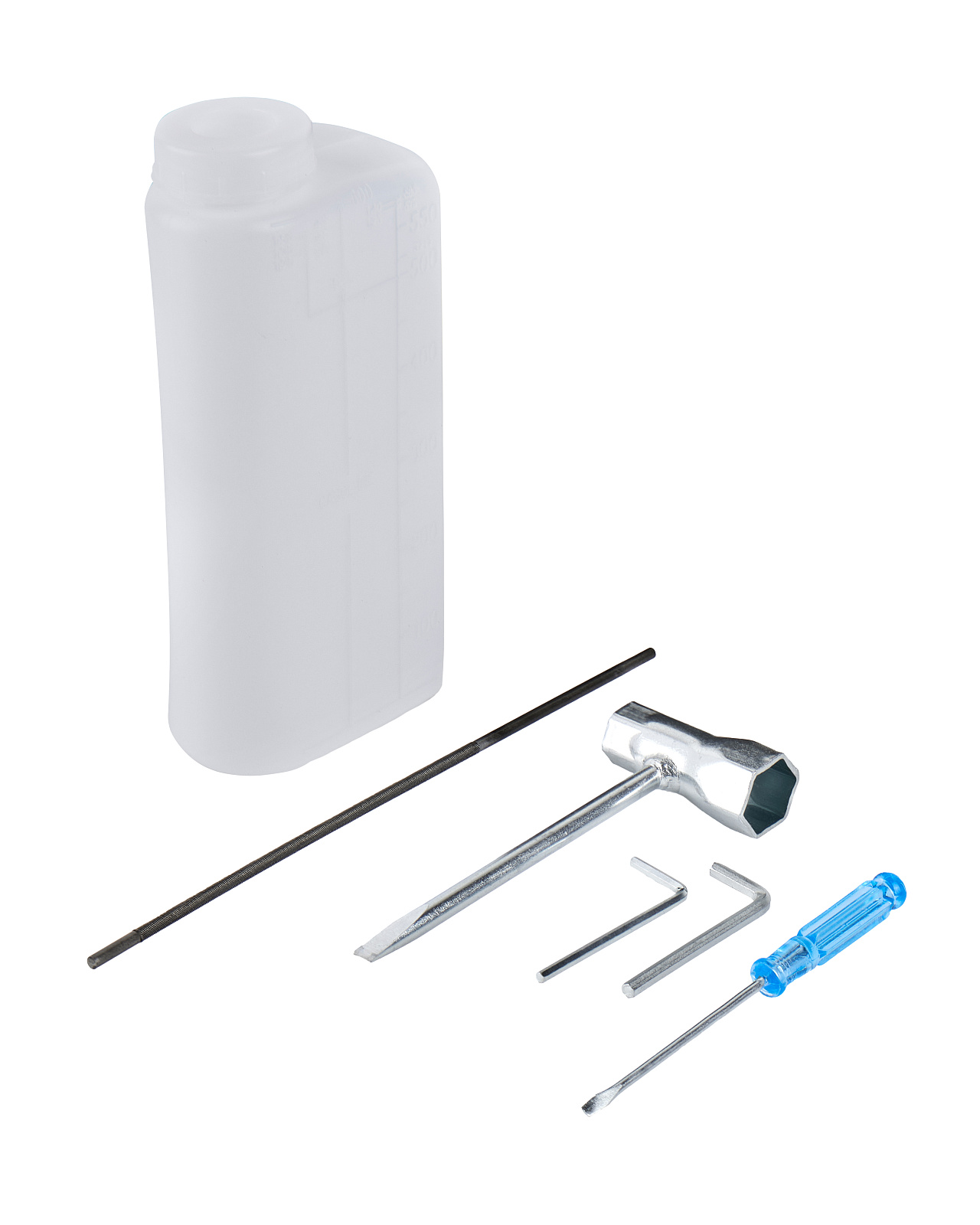 При обслуживании бензопилы к свече и воздушному фильтру легко добраться, крышка фиксируется стальными защёлками. Воздушный фильтр имеет силиконовые основания, что улучшает его прилегание при установке и предотвращает попадание пыли и грязи в область цилиндропоршневой группы. Для комбинированного ключа снизу задней рукоятки есть специальная ниша, где ключ надёжно фиксируется и всегда под рукой, чтобы, например, подтянуть цепь, а механизм натяжения регулируется со стороны крышки сцепления, что позволяет отсоединить бензопилу, если пильную шину и цепь зажало в пропиле.