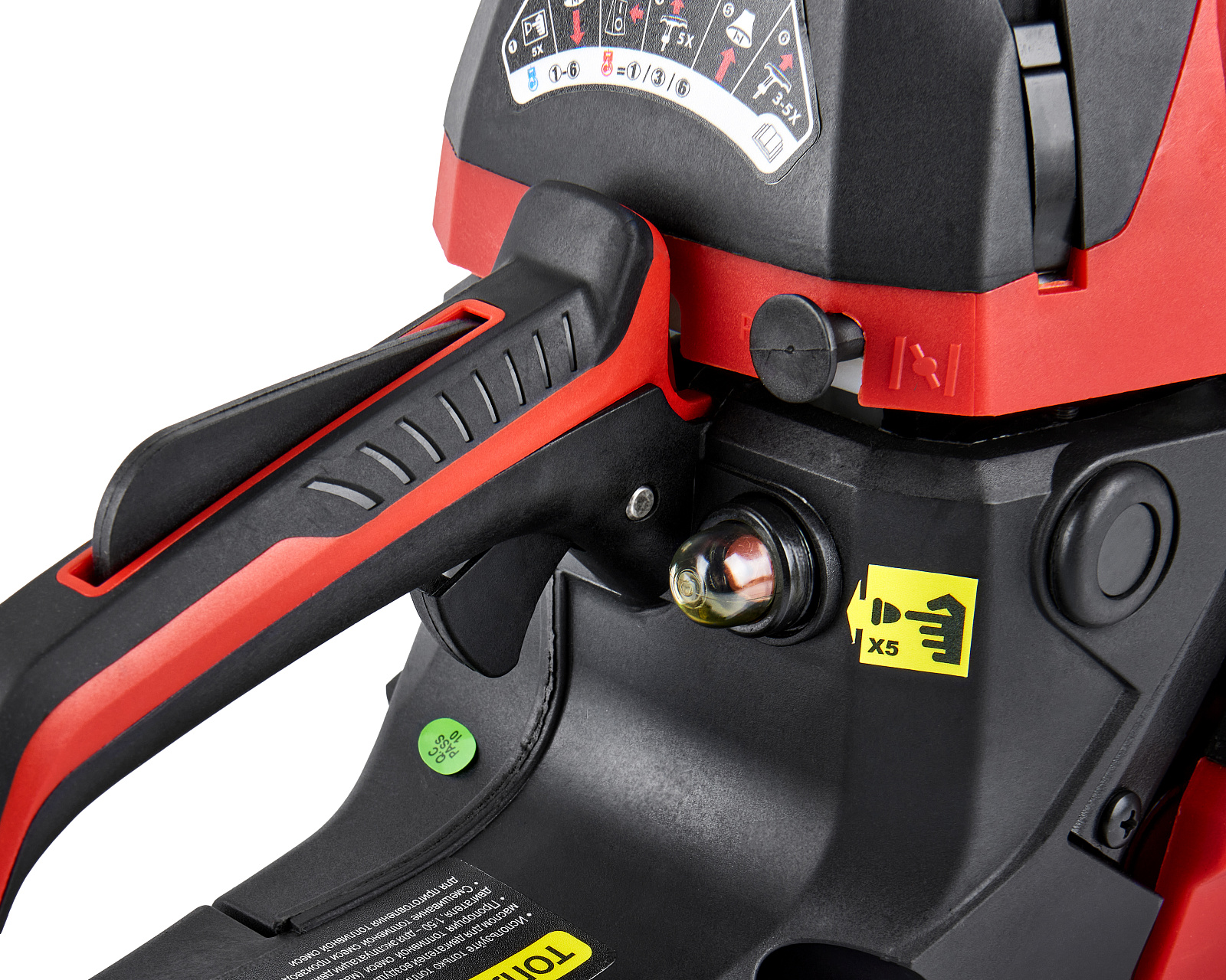 Дизайн моделей разработан с учётом обеспечения максимальной безопасности для пользователя, включая все современные требования по эргономике, и факторы, влияющие на долговечность конструкции. Бензопилы оснащены функцией легкого запуска, выключателем зажигания с «автовозвратом», окном в топливном баке для лучшего контроля уровня топливной смеси и регулируемым масляным насосом для смазки цепи.