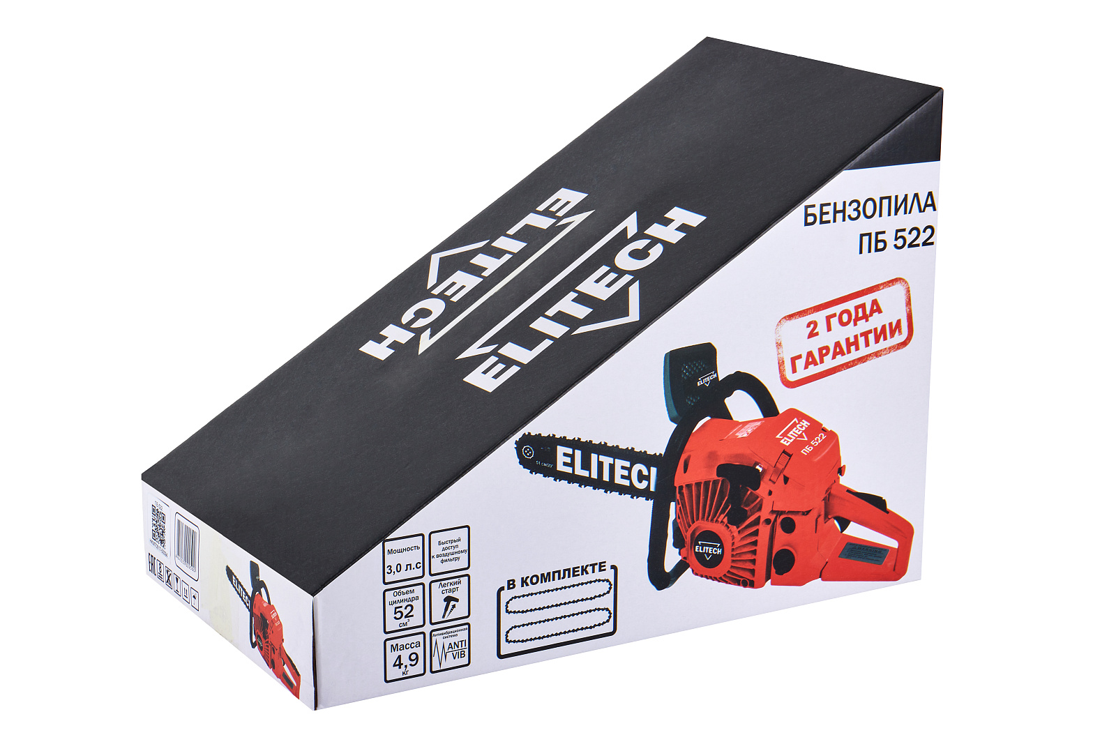Бензиновая цепная пила Elitech ПБ 522 мощностью 3 л.с. и с шиной длиной 51 см, предназначена для валки деревьев, обрезки веток и сучьев, раскряжевки и заготовки дров. Может применяться для плотницких работ, расчистки местности от кустарников и молодой поросли деревьев, и других хозяйственных работ, связанных с пилением древесины.