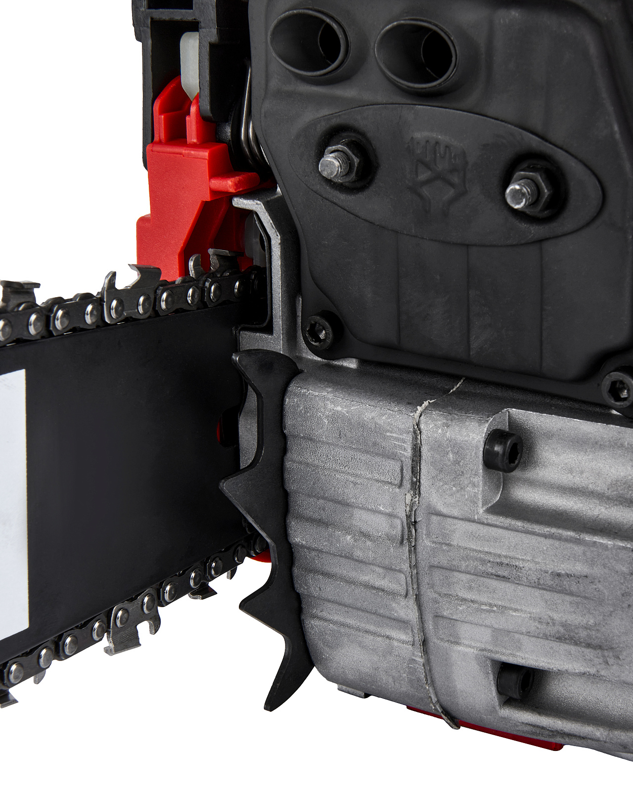на сортименты, пиления дров. Цепная пила оснащена двухтактным двигателем