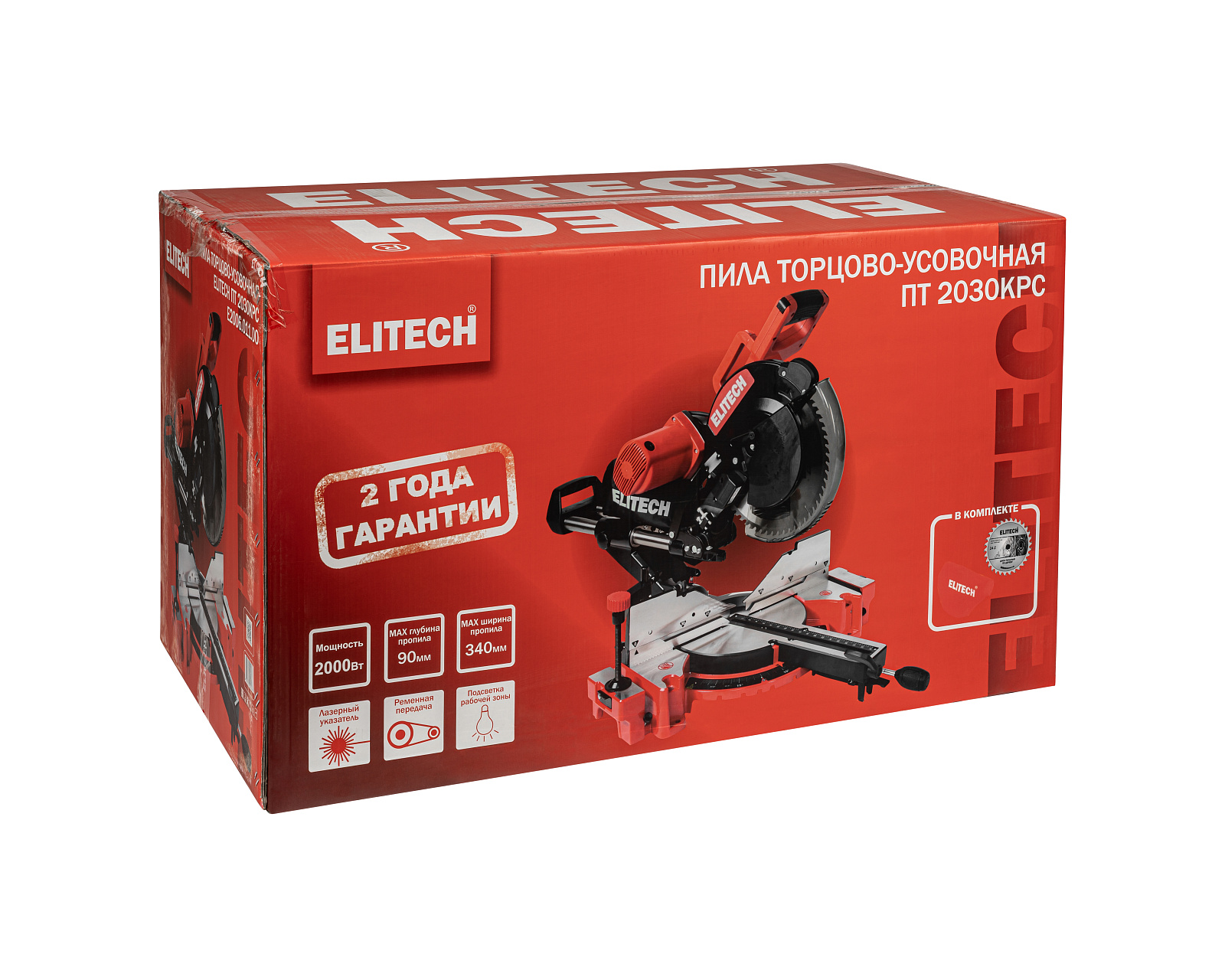 Пила торцово-усовочная ELITECH ПТ 2030КРС (E2006.011.00) мощностью 2000 Вт предназначена для стационарной точной распиловки дерева и производных от дерева материалов любой длины и любой формы под заданным углом распила диском диаметром 305 мм и максимальной глубиной до 90 мм. Пила предназначена для работы от однофазной сети переменного тока напряжением 230В и частотой 50 Гц.