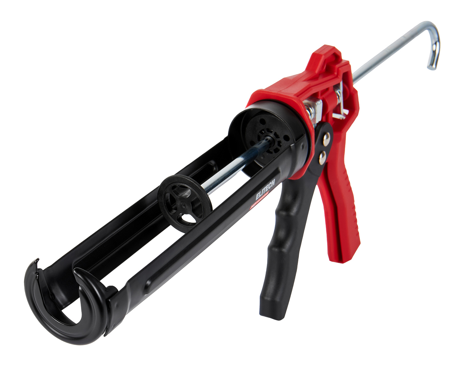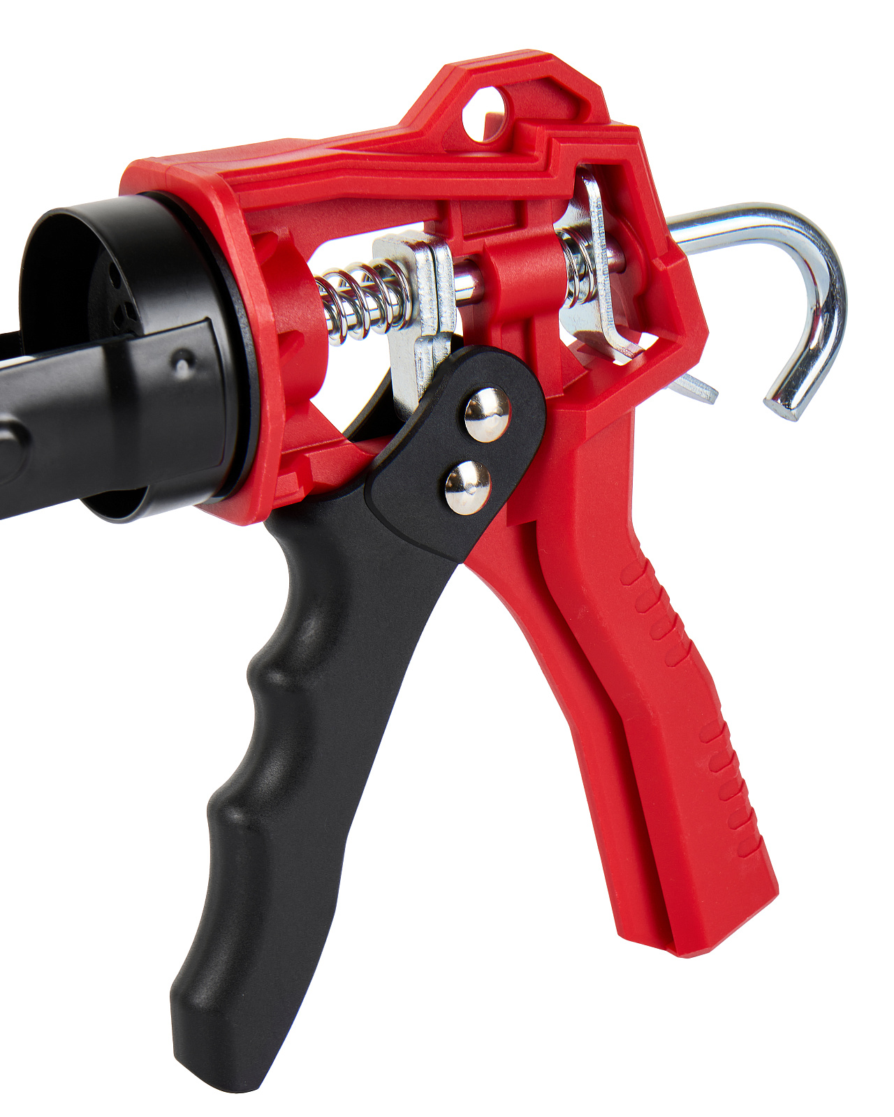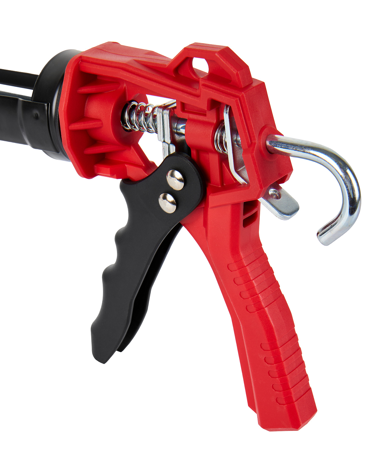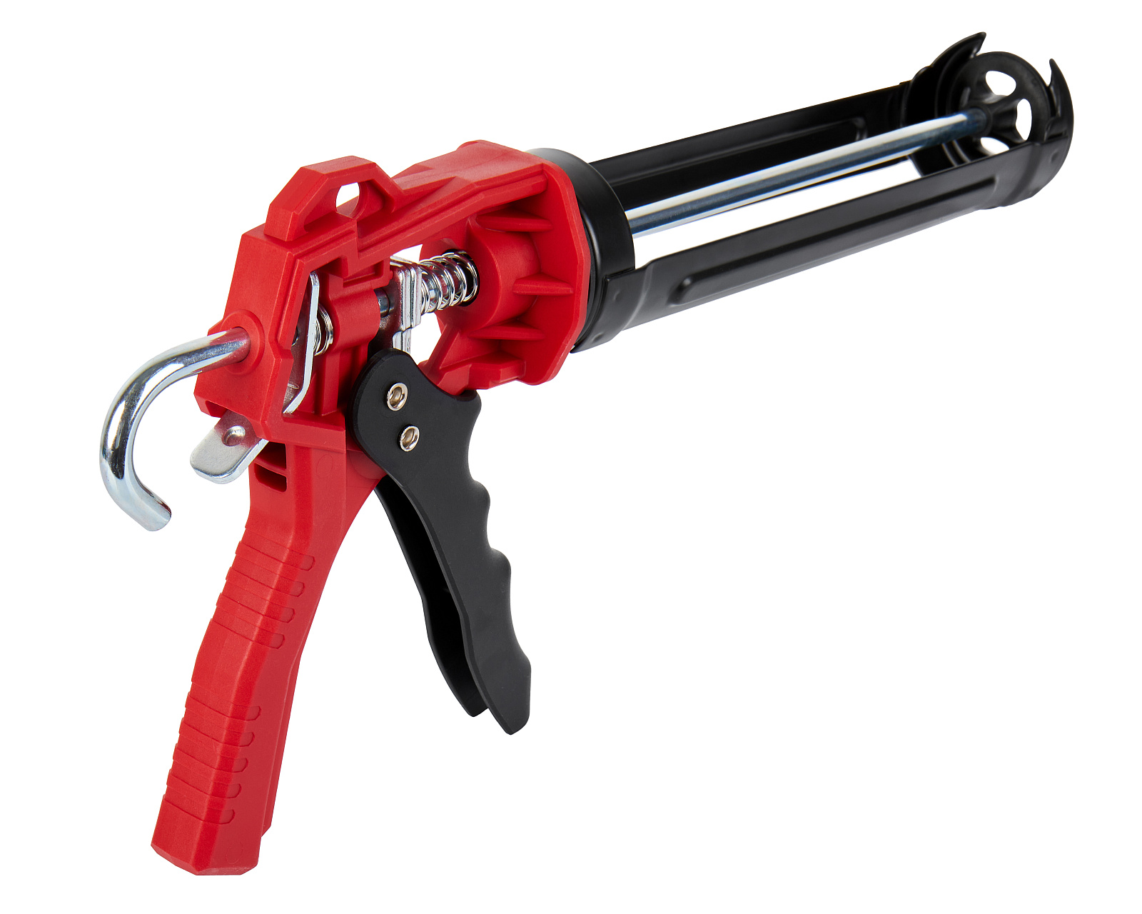 Пистолет с поворотным на 360° держателем и усилием на штоке до 1350 Н (135 кг) используется для выдавливания из тубы герметизирующих или клеящих составов.