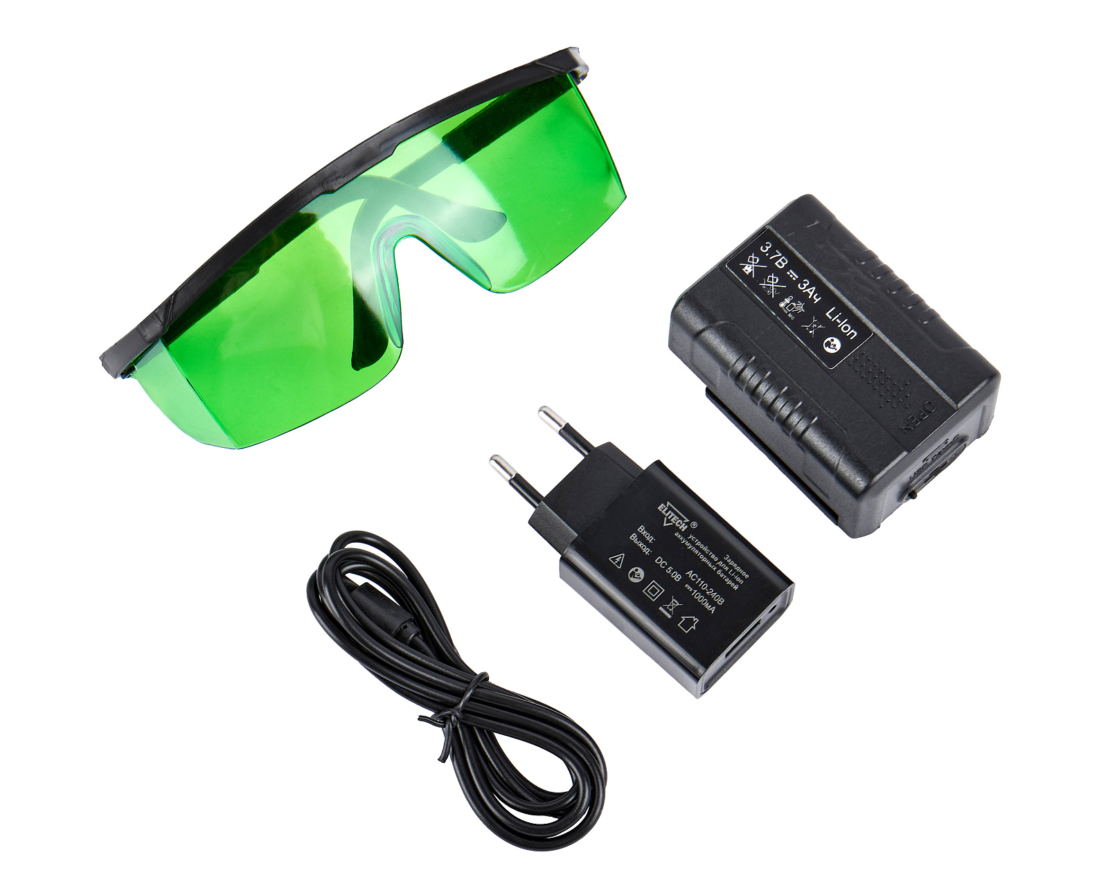 Лазерный нивелир ELITECH позволяет решать широкий спектр задач, связанных с ремонтом и отделкой как внутри помещений, так и снаружи. Данные модели проецируют одну горизонтальную и четыре вертикальные линии с точкой пересечения в зените, А также все модели проецируют отвес вниз (надир). Нивелир отлично подходит для разметки при укладке керамической плитки, установки маяков, оклейки стен обоями, установки дверей, монтажа оборудования, монтажа вертикальных перегородок и т.д. Для удобства рабочего процесса и экономии заряда батареи можно выбрать для проецирования всего одну из линий (одну из вертикальных или горизонтальную). В качестве элемента питания используется литий-ионная аккумуляторная батарея. Прибор оснащен функцией самовыравнивания в определенном диапазоне, при превышении этого диапазона срабатывает звуковой сигнал. Для быстрой установки на любых поверхностях прибор оснащен пузырьковым уровнем и регулируемой треногой с поворотным лимбом. В конструкции прибора предусмотрена резьба 5/8'' для установки на штатив. Модели с названием «ЗЕЛ» имеют лазерный луч зеленого цвета, который лучше видно при работе снаружи помещения.2 года