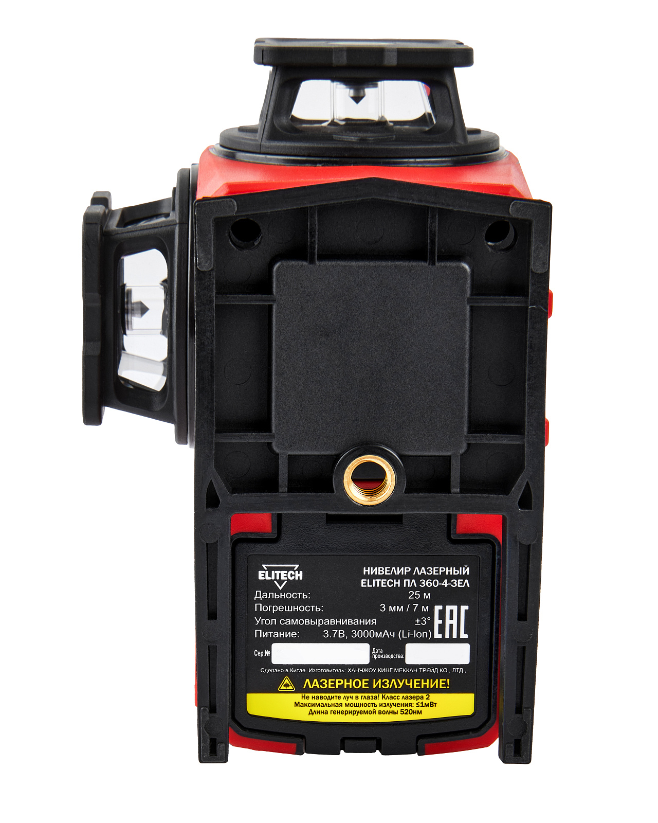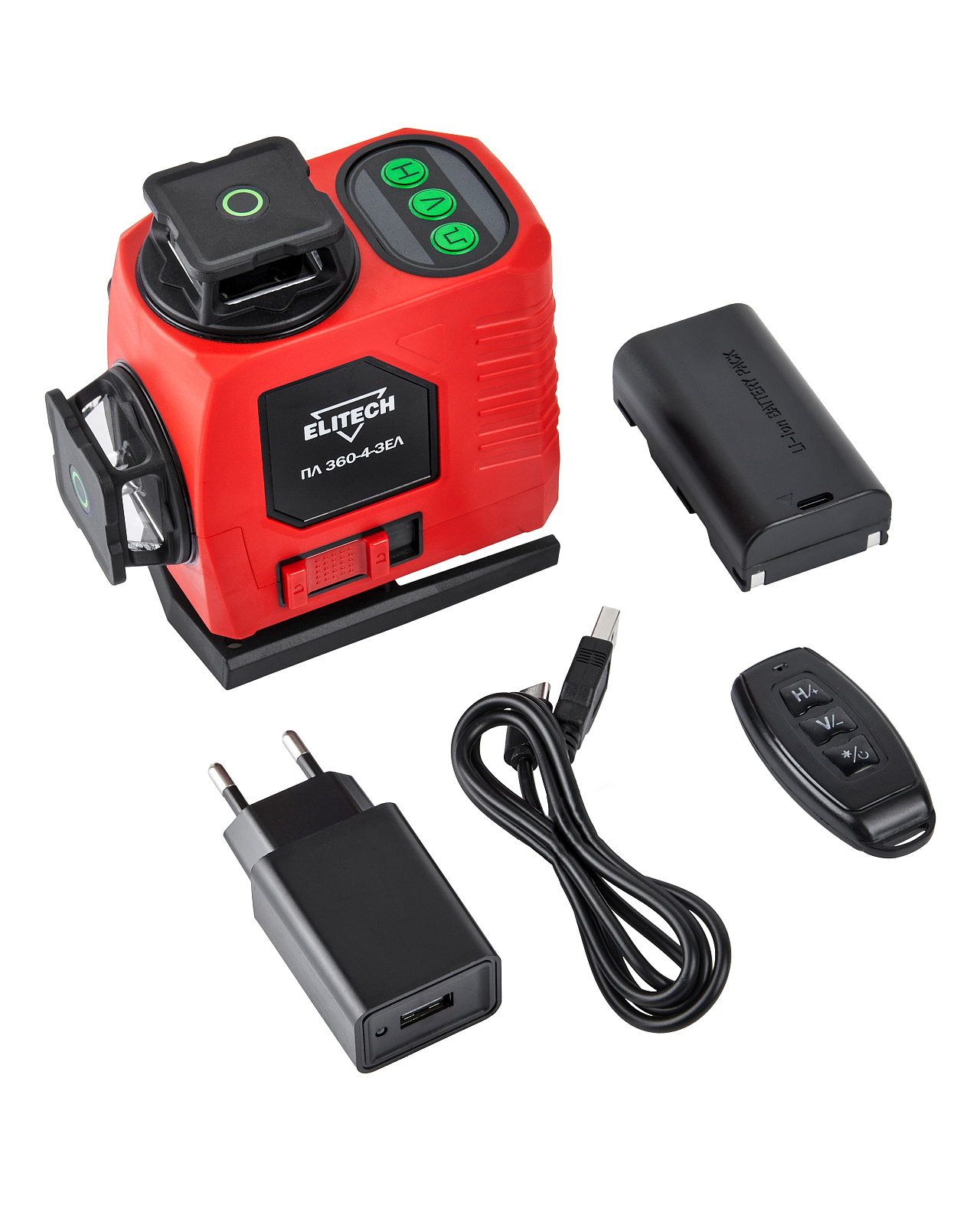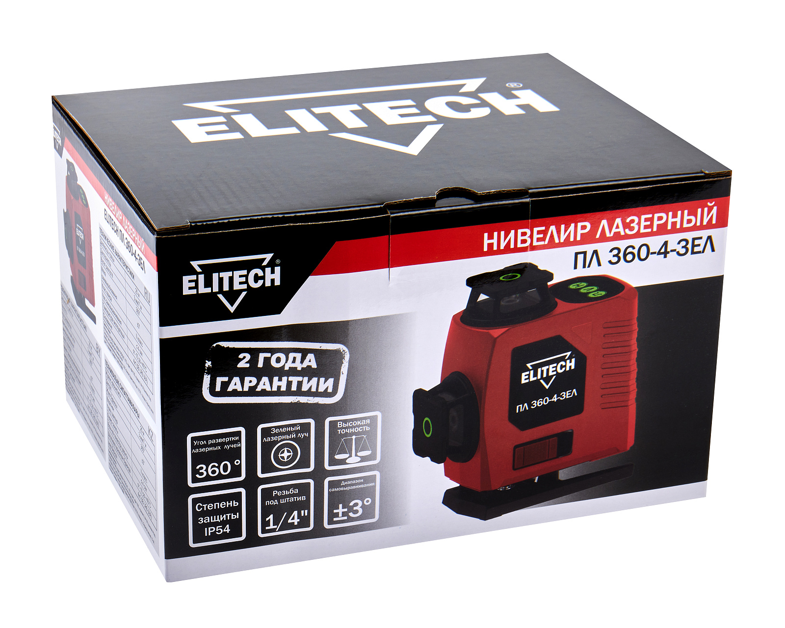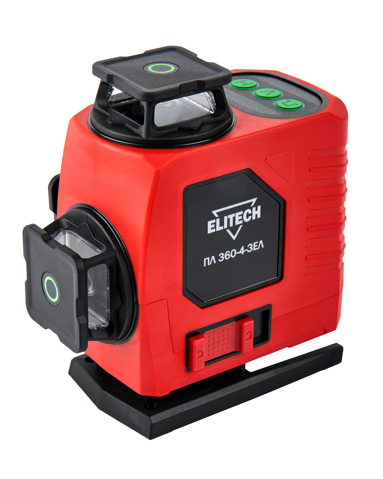 Лазерный нивелир с дальностью работы 25 м и зеленым лучом позволяет решать широкий спектр задач, связанных с ремонтом и отделкой как внутри, так и снаружи помещений и отлично подходит для работ по укладке керамической плитки, оклейке стен обоями, установке дверей, монтажа оборудования и т.д. Для удобства рабочего процесса и экономии заряда батареи можно выбрать для проецирования всего одну плоскость или любое сочетание горизонтальных и вертикальных плоскостей.Модель ELITECH ПЛ 360-4-ЗЕЛ проецирует 4 плоскости (2 горизонтальные и 2 вертикальные взаимоперпендикулярные). Пересечения линий образуют 10 точек - под прибором (надир), над прибором (зенит) и 8 точек в горизонтальной плоскости прибора с углом 90° между собой.