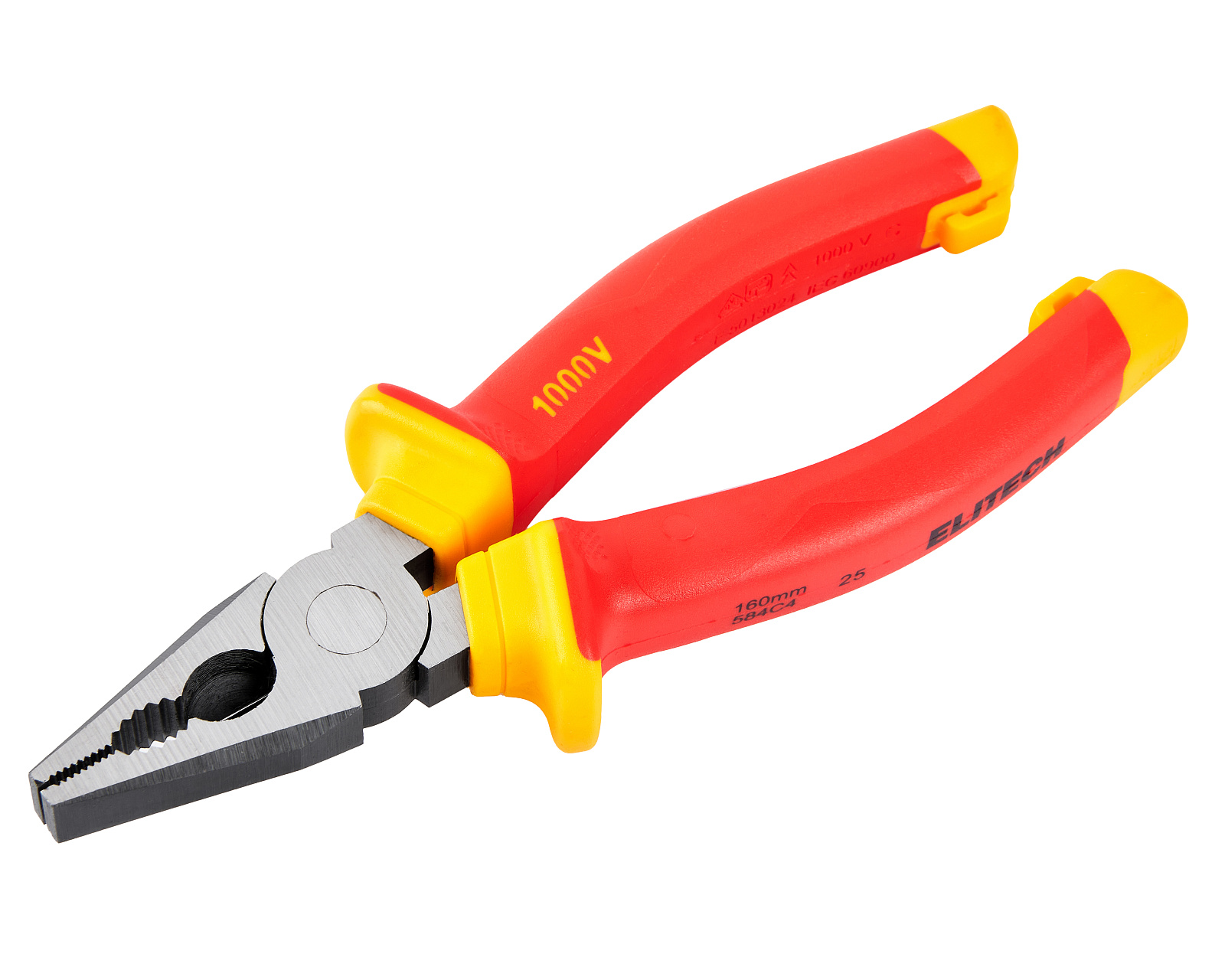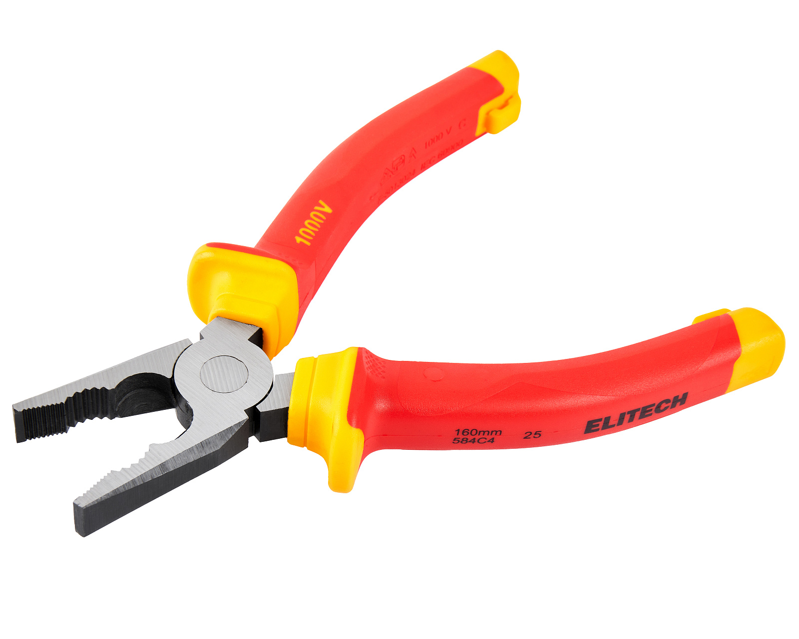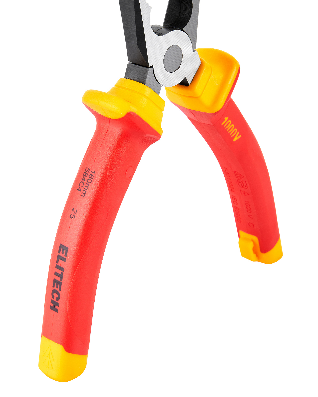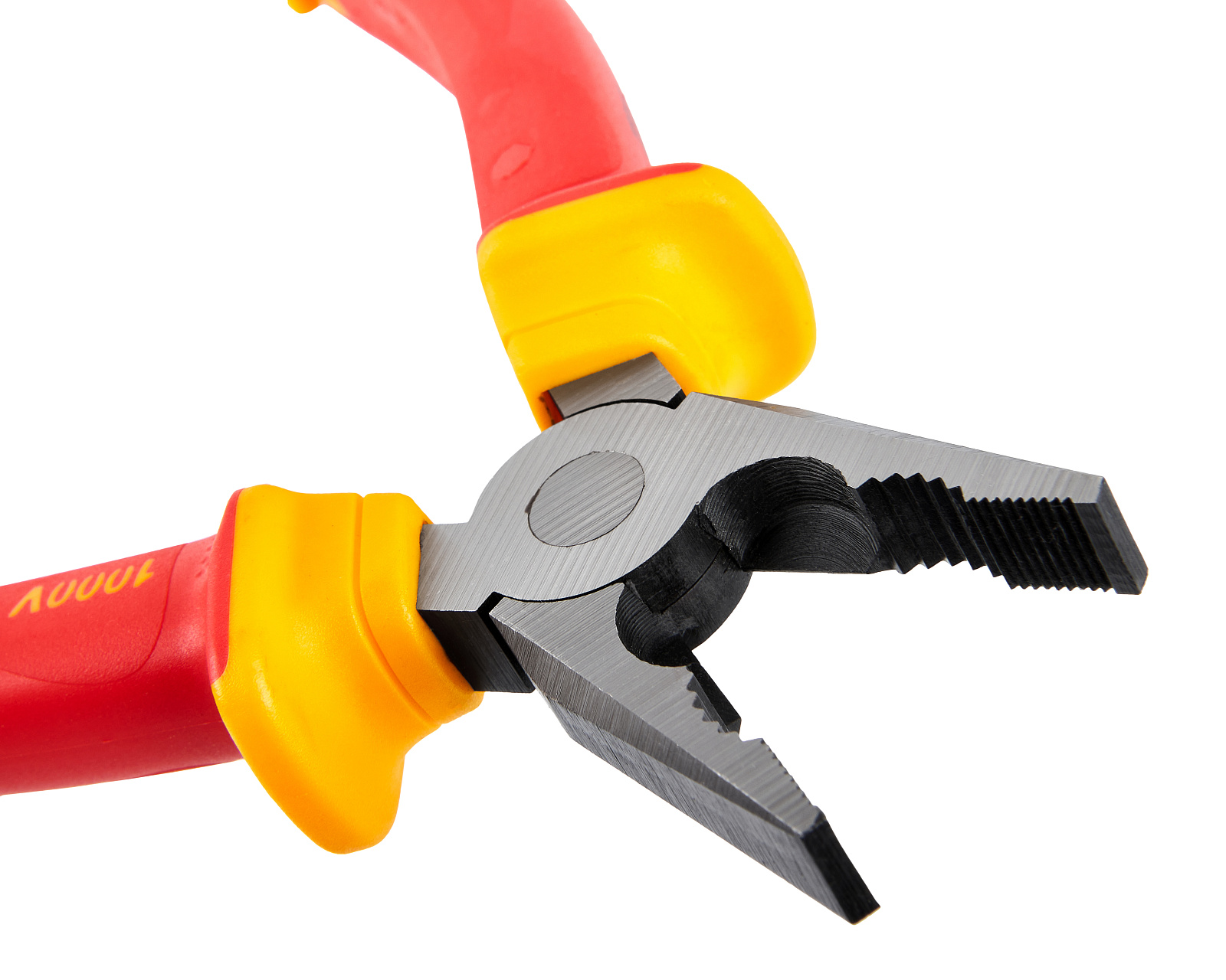 Плоскогубцы длиной 160 мм из хромованадиевой стали с диэлектрическими рукоятками рассчитаны на работу с неизолированными токоведущими деталями под напряжением до 1000 вольт.