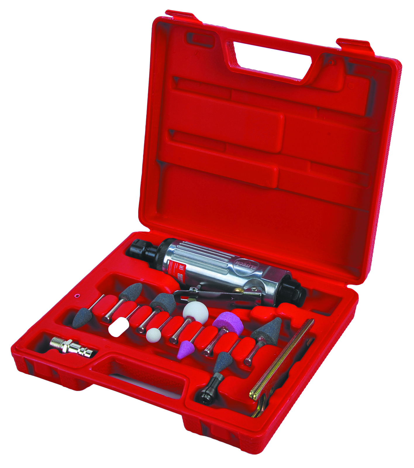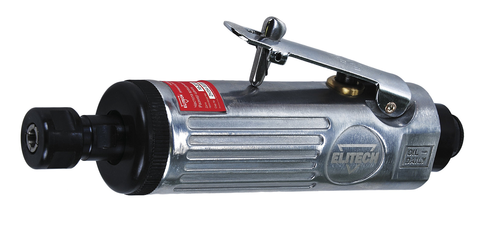 Пневмошлифмашина прямая ELITECH 0704.013100 в кейсе с набором насадок предназначена для сухой резки, зачистки и шлифовки материалов из металла камня, стекла, пластмасс и т.д. В качестве рабочей оснастки используются насадки с хвостовиком 3 мм и 6 мм соответствующего типа (по металлу, по камню и т.д.), в зависимости от обрабатываемого материала и вида работ. Для работы пневмошлифмашины необходимо использовать воздушный компрессор с производительностью на выходе не менее 198 л/мин при давление 6,3 бар. Скорость вращения 22000 о/мин. Преимущества : высокая скорость обработки, металлический корпус, низкая пожароопасность, защитная блокировка кнопки пуска, компактная конструкция. Комплектация : пневмошлифмашина, камень шлифовальный (3 мм) 5 шт., камень шлифовальный (6 мм) 5 шт., цанга 6 мм. цанга 3 мм, ключ 2 шт., переходник 1/4''-рапид, кейс, руководство по эксплуатации. Габариты 175 х 40 х 64 мм, масса 0,6 кг.