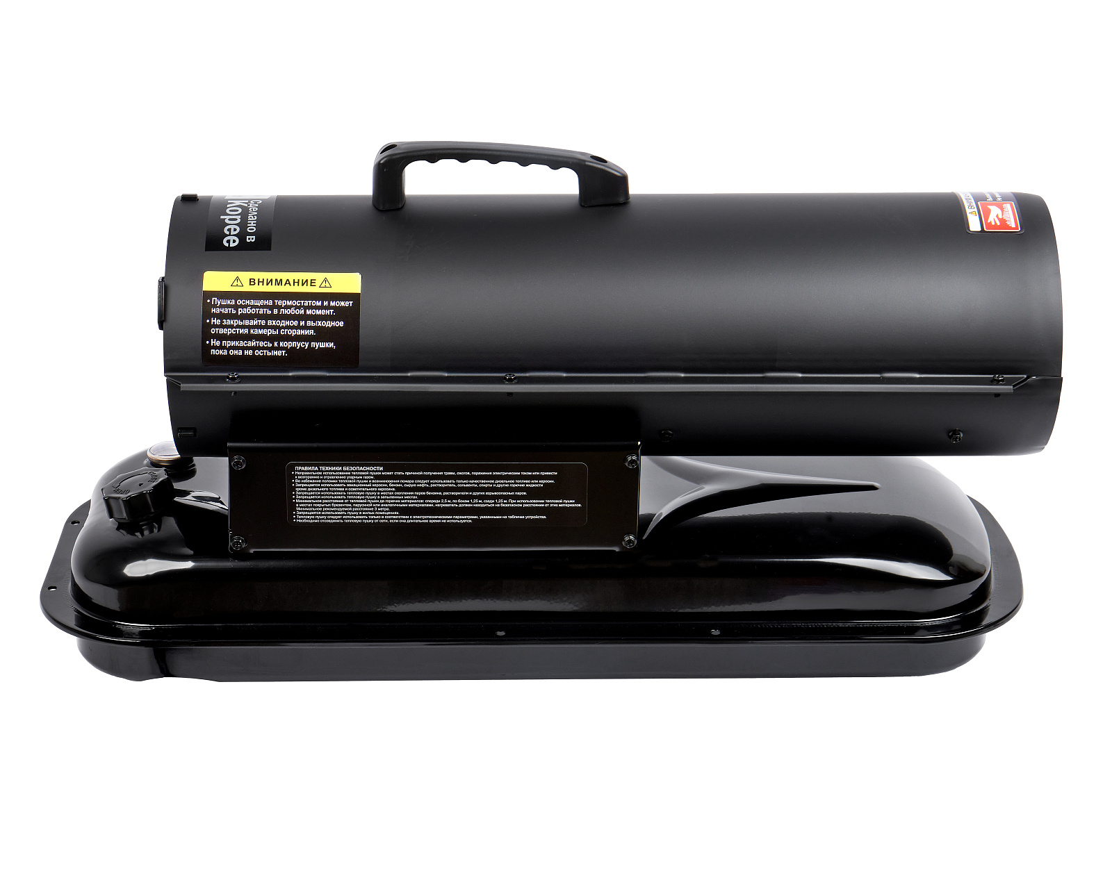 Дизельная тепловая пушка прямого нагрева (или воздухонагреватель) предназначена для работы на открытых/полузакрытых площадках и временного обогрева/просушки хорошо проветриваемых помещений или с работающей приточно-вытяжной вентиляцией.Запрещено использовать воздухонагреватель в жилых помещениях и в помещениях с не функционирующей вентиляционной системой.