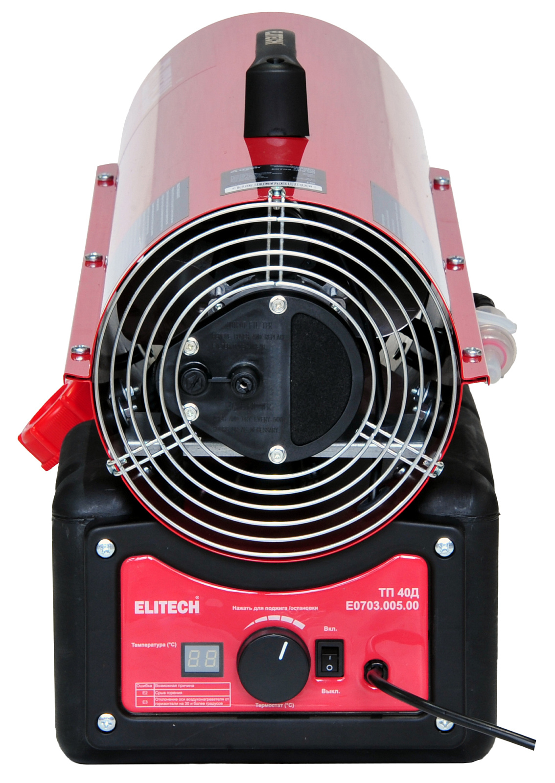 Дизельная тепловая пушка прямого нагрева. Тип топлива дизельное. Работает от сети питания 230В. Предназначена для работы в нежилых помещениях с приточно-вытяжной вентиляцией. Оснащена термостатом.