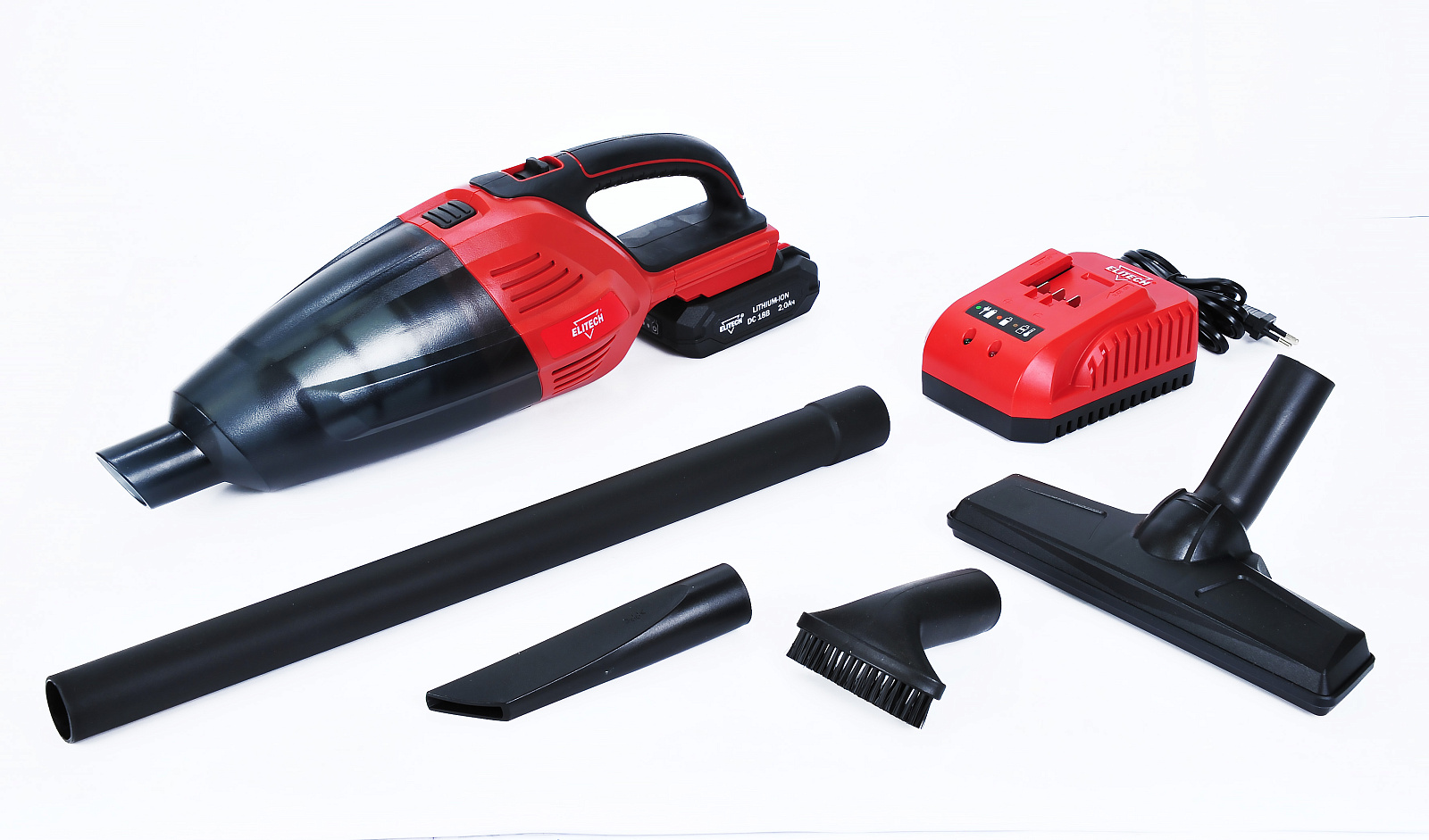 Пылесос аккумуляторный ELITECH ПРА 18СЛ (Е1302.001.01) предназначен для сбора бытовой пыли и мусора, уборки помещений, салона автомобиля, чистки мягкой мебели. В качестве источника питания используется аккумулятор напряжением 18 В. В пылесосе установлен фильтр класса S (тряпичный, многоразовый, с возможностью стирки). При отсоединение контейнера для пыли от корпуса пылесоса фильтр полностью перекрывает отверстие контейнера и не дает возможности случайно рассыпать его содержимое. В комплекте три насадки для уборки и удлинительная трубка.