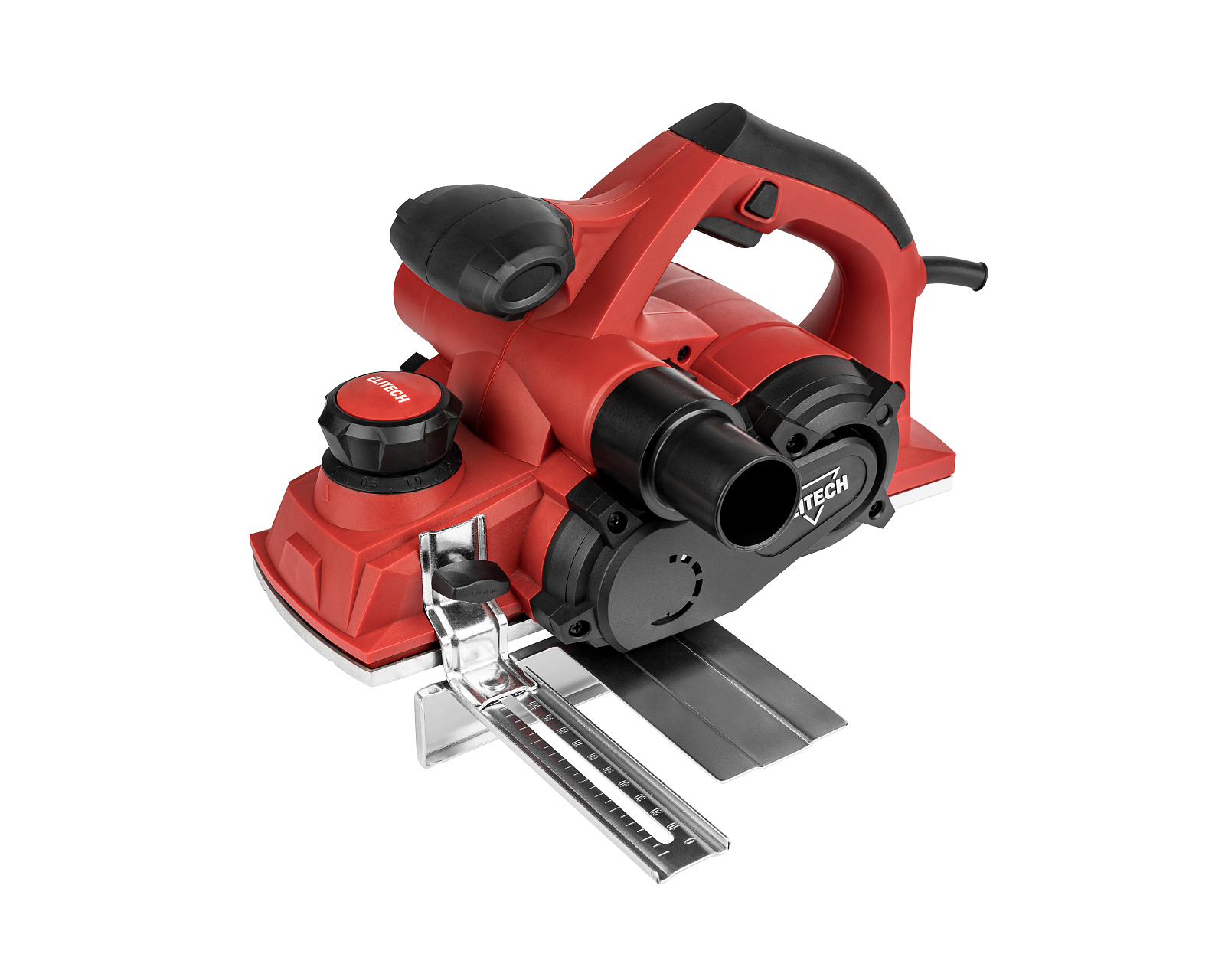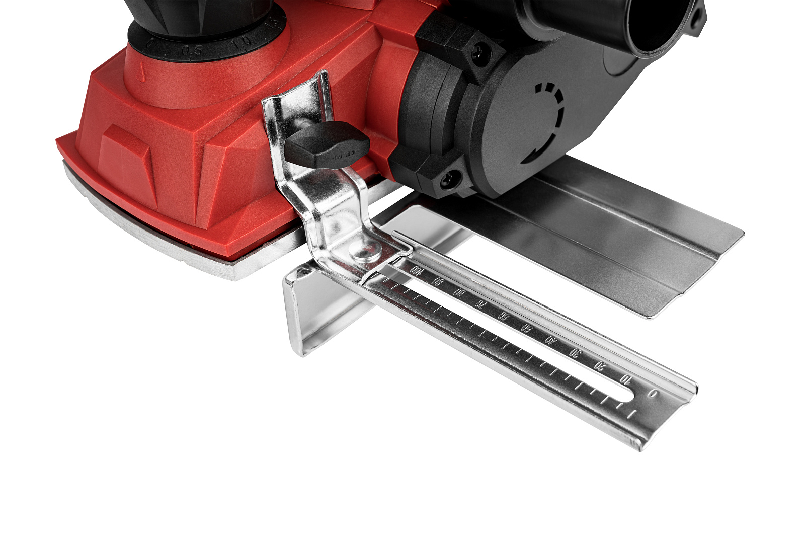 Рубанок электрический мощностью 1000 Вт с размерами ножа 110х5,5х1,2 мм, предназначен для строгания деревянных поверхностей, выборки четверти, снятия фаски. Направляющая планка и упор с разметкой для выборки четверти обеспечивают точность при выполнении работ.
