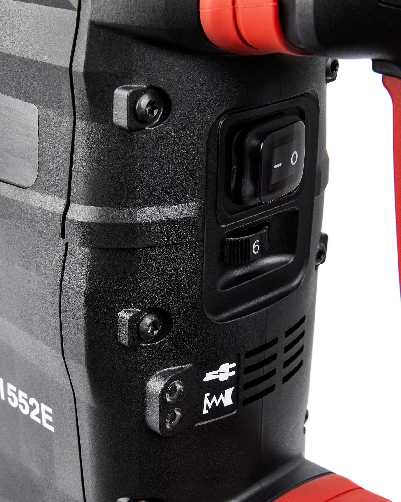 Перфоратор RH 1552E (E2205.020.01). Тип патрона SDS-max. Мощность 1500 Вт. Количество режимов 2 (сверление с ударом, отбойный молоток). Регулировка положения зубила (12 положений). Регулировка оборотов двигателя. Энергия удара 2-15 Дж. Предназначен для работы с буром, диаметром до 52 мм и коронкой, диаметром до 125 мм. Вертикальное расположение двигателя. Антивибрационная система. Индикатор износа щеток двигателя. Индикатор включения в сеть.