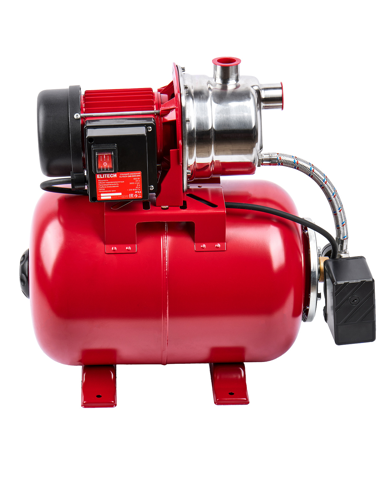 Насосная станция в корпусе из нержавеющей стали мощностью 800 Вт и производительностью 50 л/мин с максимальным напором 40 м предназначена для организации водоснабжения малоэтажных домов, повышения давления в системе водоснабжения (только при промежуточном включении), орошения садов и огородов, подачи чистой пресной воды в промышленности и сельском хозяйстве. Забор воды может осуществляться из колодцев, открытых водоемов и других источников, с глубины не более 8 м. При этом максимальная температура воды не должна превышать 35°С. Насосная станция не предназначена для подачи воды, содержащей абразивные, длинноволокнистые и химические составляющие. Насосную станцию нельзя использовать для подачи хлорсодержащей воды, например в плавательные бассейны.