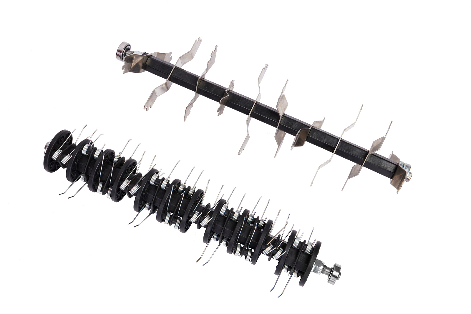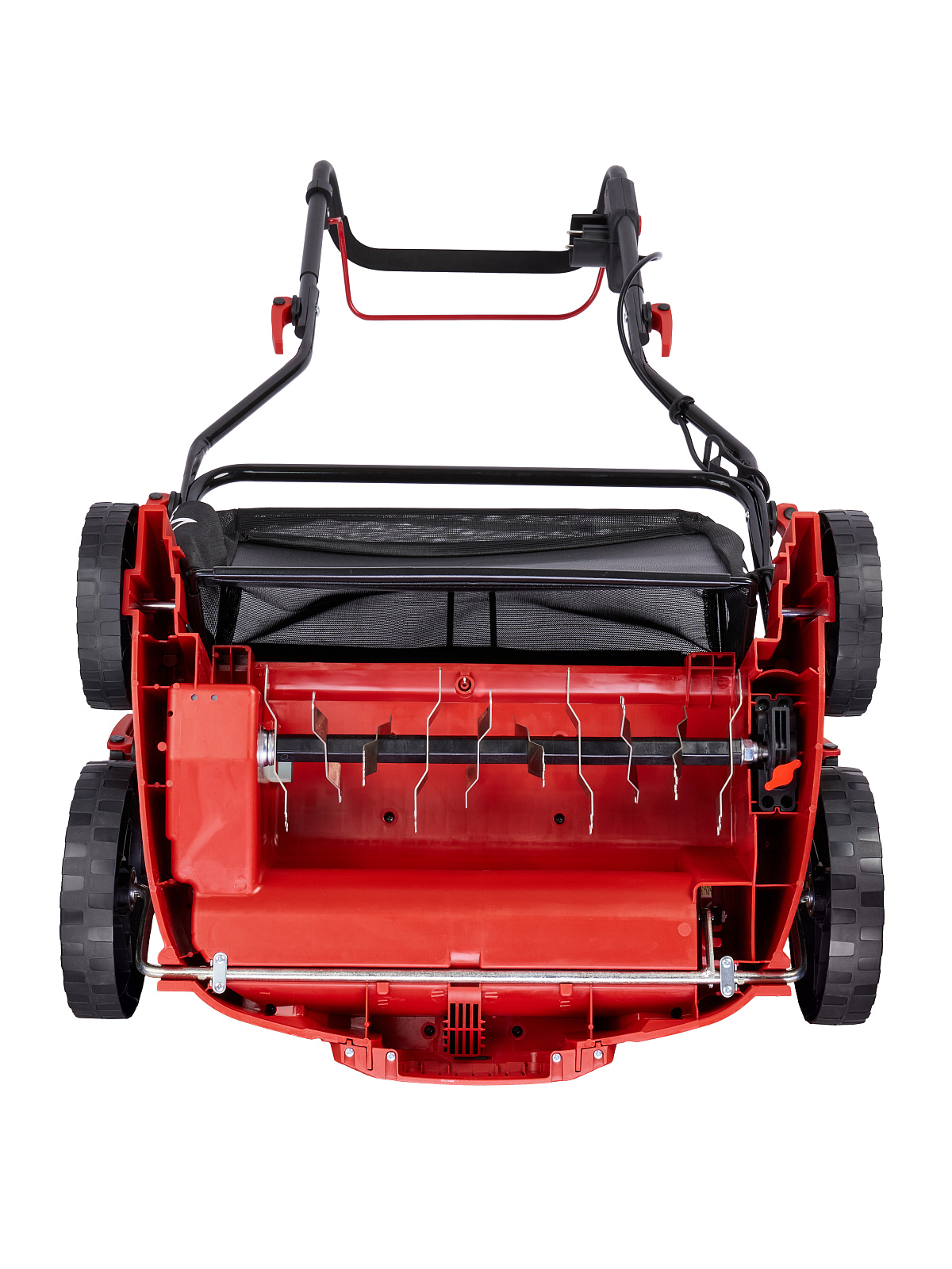 В стандартную комплектацию модели входят две сменные насадки: металлические ножи и пружинные грабли. Металлические ножи – основной для использования аксессуар в стандартных условиях. Ими «вычёсывают» поверхность, удаляя солому и мох, а при небольшом заглублении в почву – они надрывают сплетения корневой системы травы, работая, как скальпель. И каждый «повреждённый» корень даёт новый росток, за счёт чего газонная трава становится гуще.