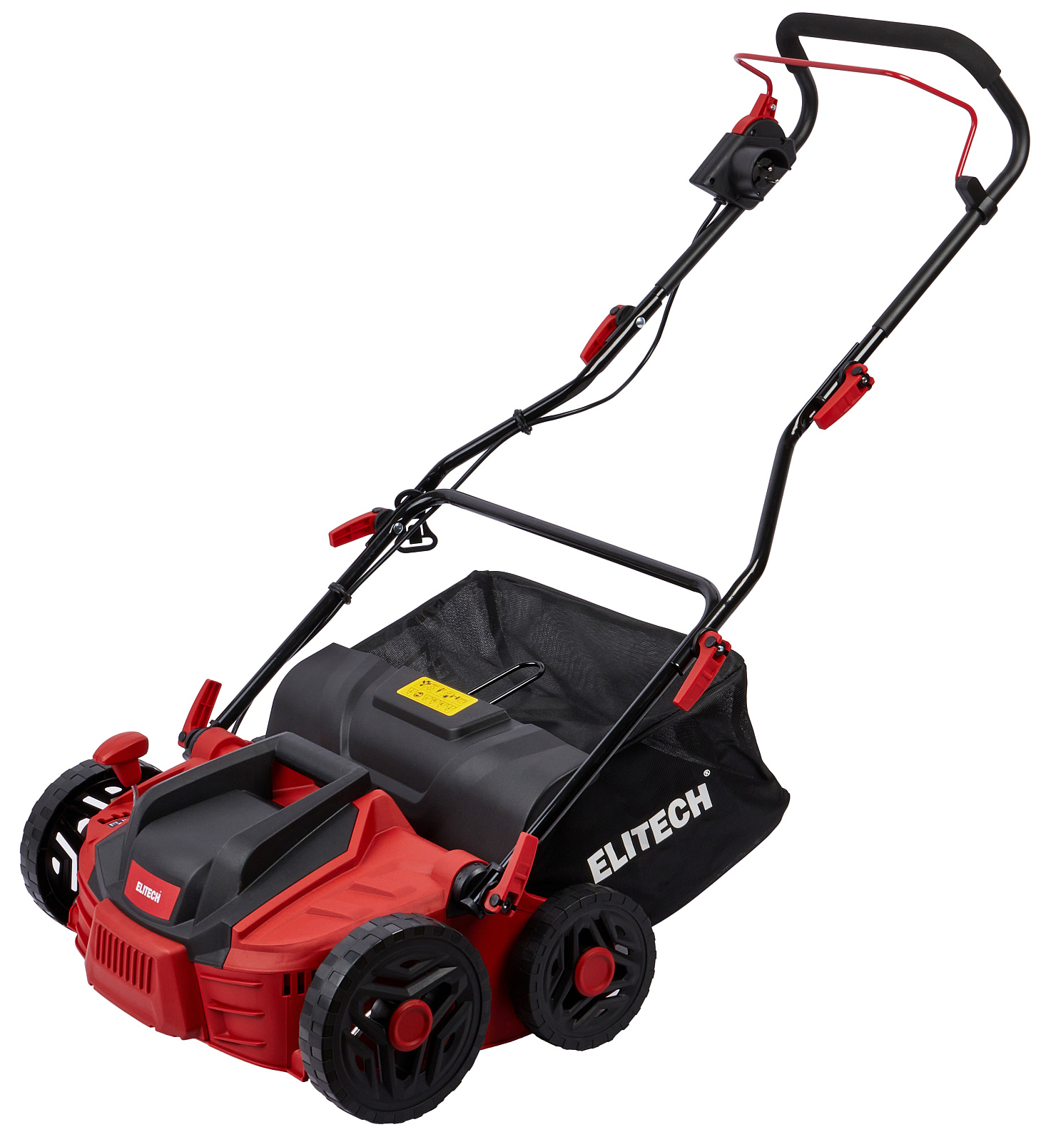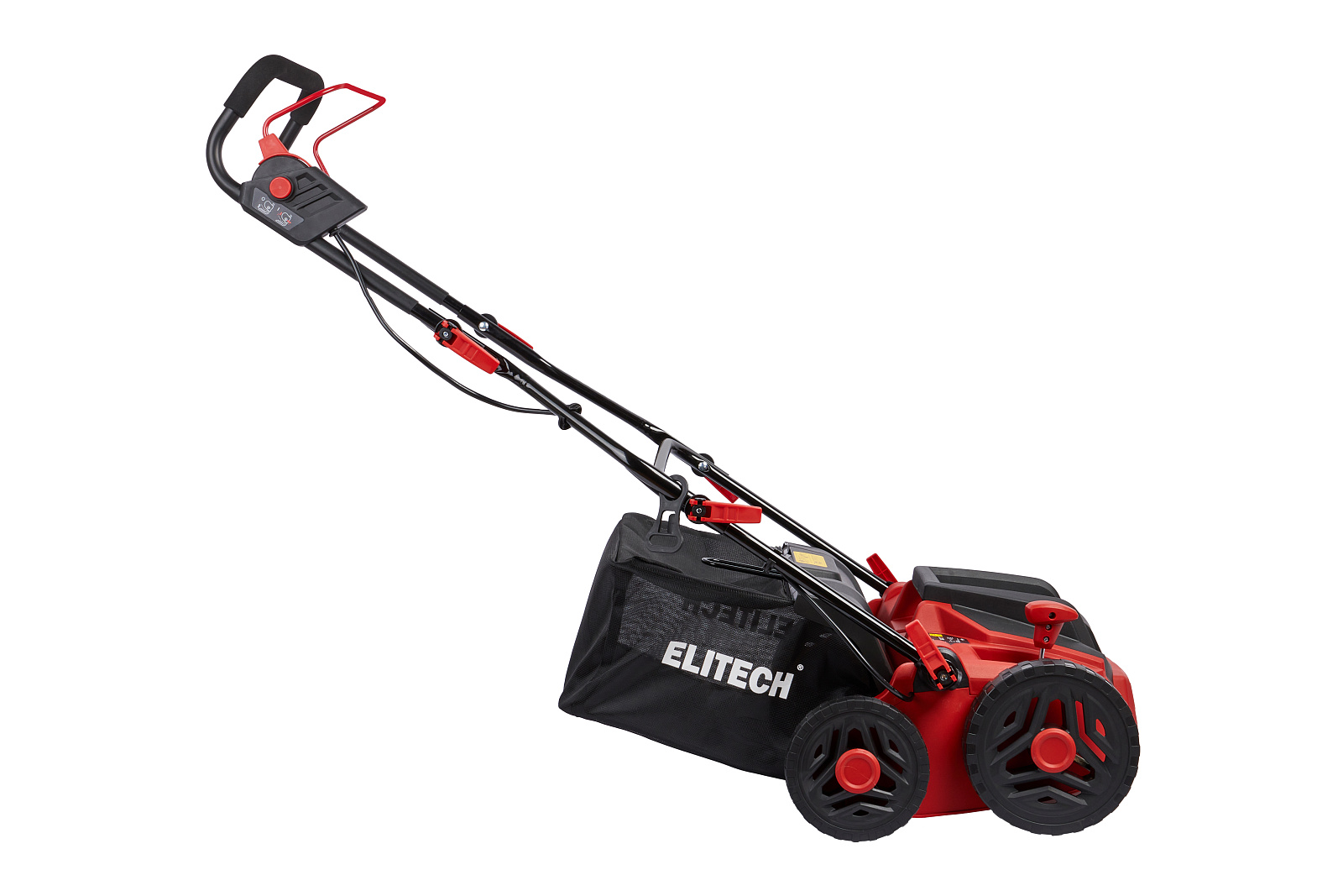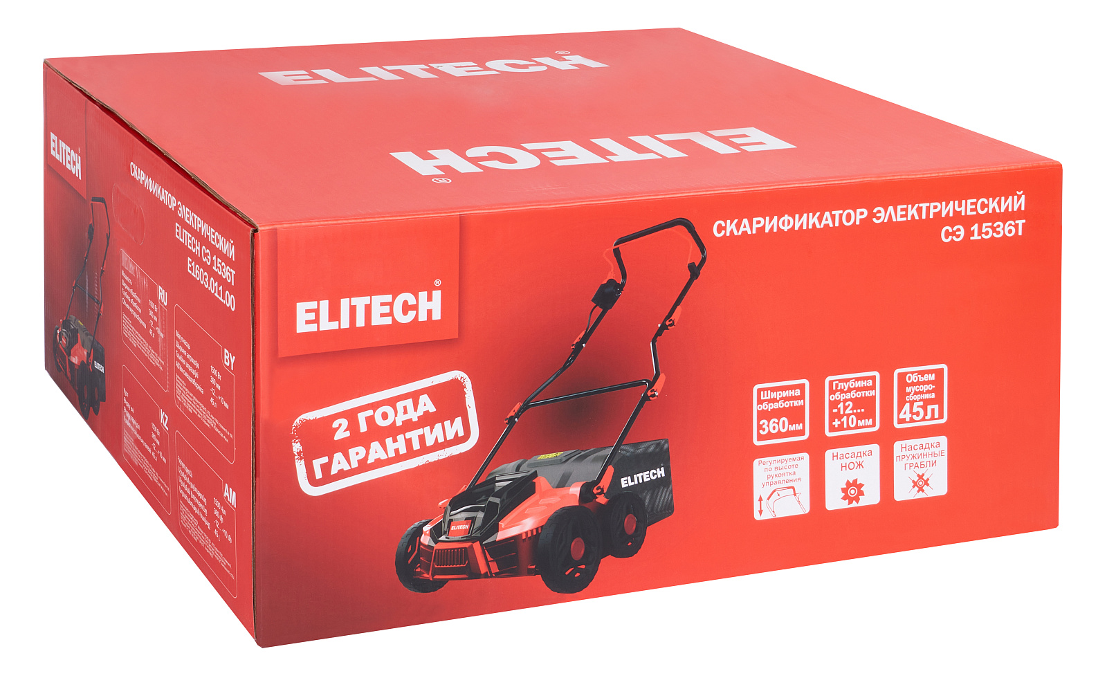 Электрический скарификатор ELITECH СЭ 1536Т мощностью 1,5 кВт и шириной обработки 360 мм предназначен для ухода за газоном методом механического вычёсывания с поверхности дёрна, мха и соломы, которые препятствуют росту травы. Большие колёса (200мм – передние, 165мм – задние) на шарикоподшипниках обеспечивают отличную маневренность при обработке территории. Удобная ручка над двигателем и сбалансированная конструкция позволяет без труда перемещать и транспортировать агрегат. Скарификатор имеет широкий диапазон регулировок величины заглубления (от -12мм до +10 мм, 5 позиций) и удобный рычаг для быстро перевода рабочего органа в требуемое положение. Для подбора удаленного с поверхности мусора модель оснащена мусоросборником, с объёмом 45 л.