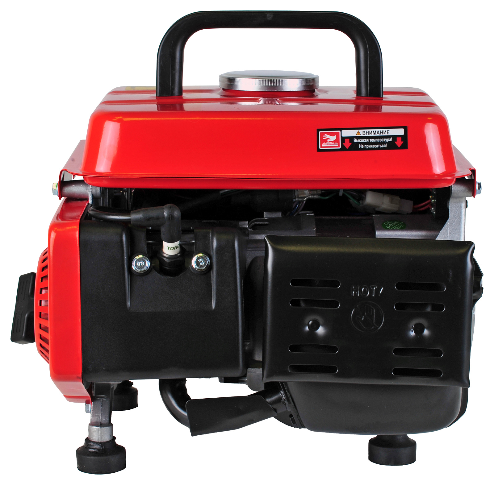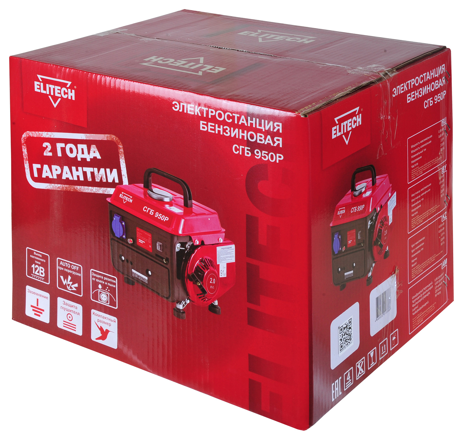 Электростанция СГБ 950Р с двухтактным бензиновым двигателем. Однофазная. Номинальная мощность 0,65кВт. Одна розетка 220В/16А. Ручной стартер.