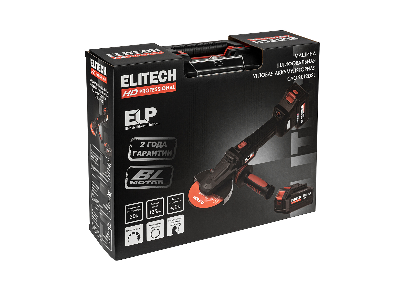 Шлифмашина угловая аккумуляторная ELITECH HD CAG 2012DSL 20 В, 125 мм, 2х4,0 Ач