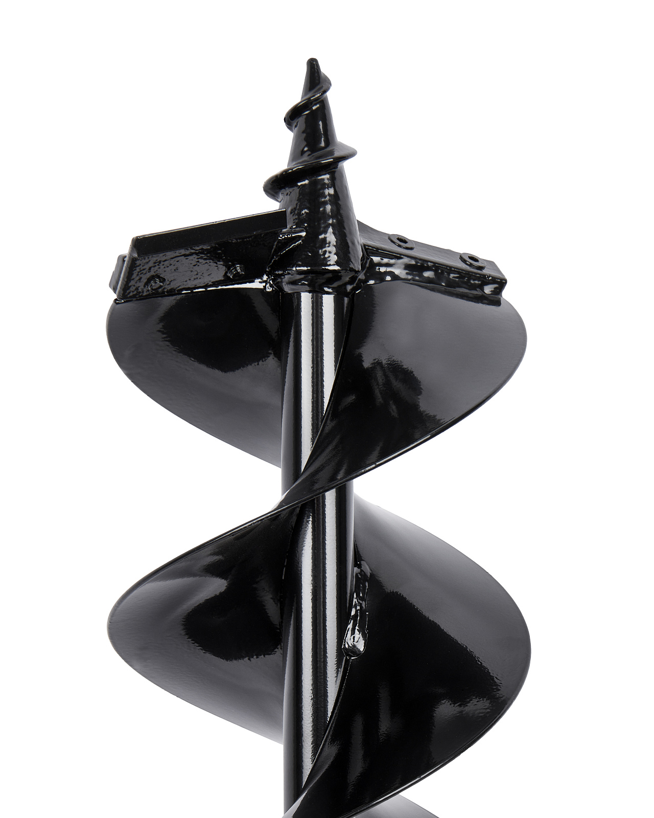 Двухзаходный шнек с двумя спиралями увеличивает объем вынимаемого грунта – то есть в два раза повышается производительность работы по сравнению с однозаходной конструкцией.Толщина металла спирали – 2 мм. Усиленный винтовой полнотелый наконечник центрирует шнек в намеченной точке. Рассчитан на сложные грунты с включениями из камней и корней.