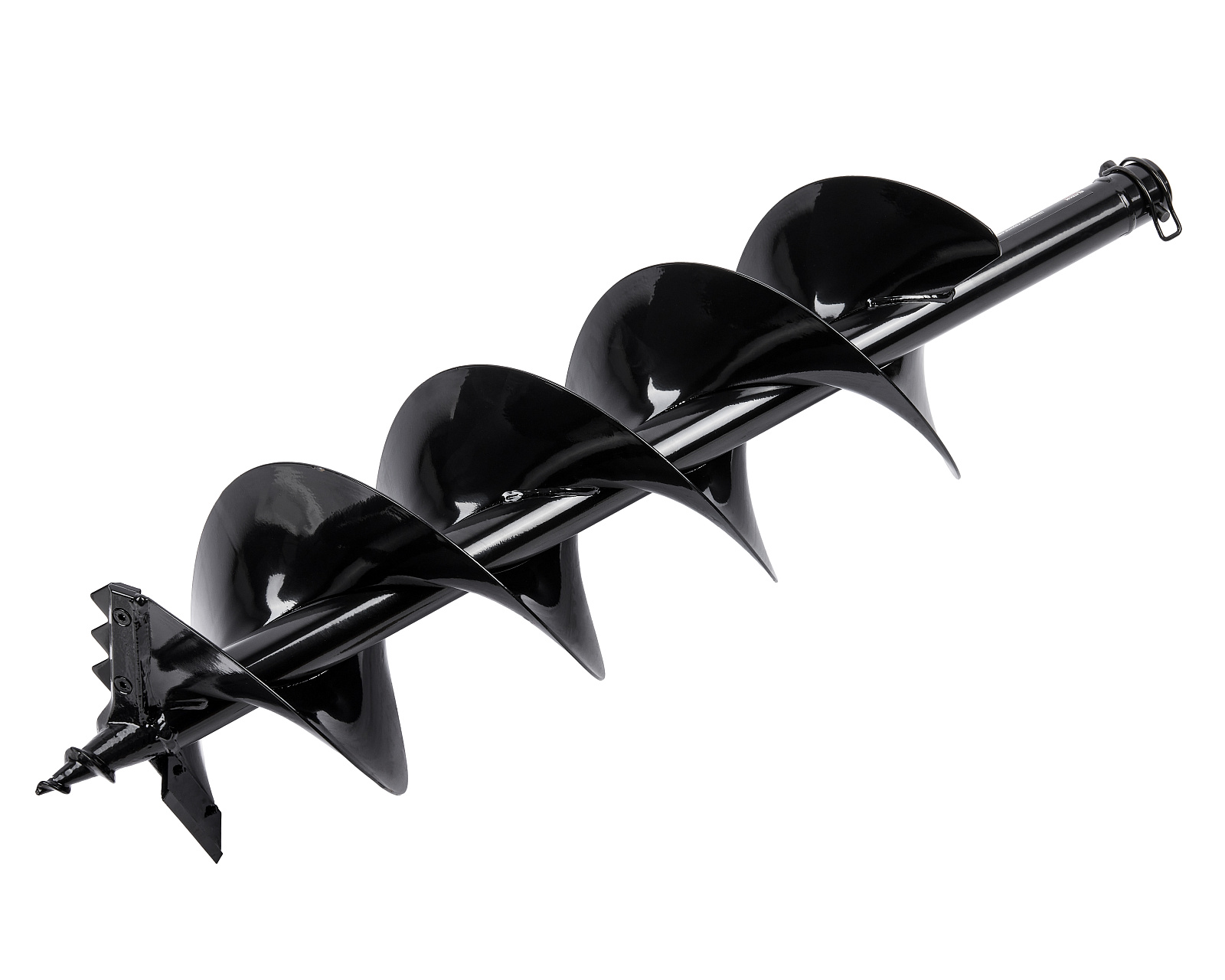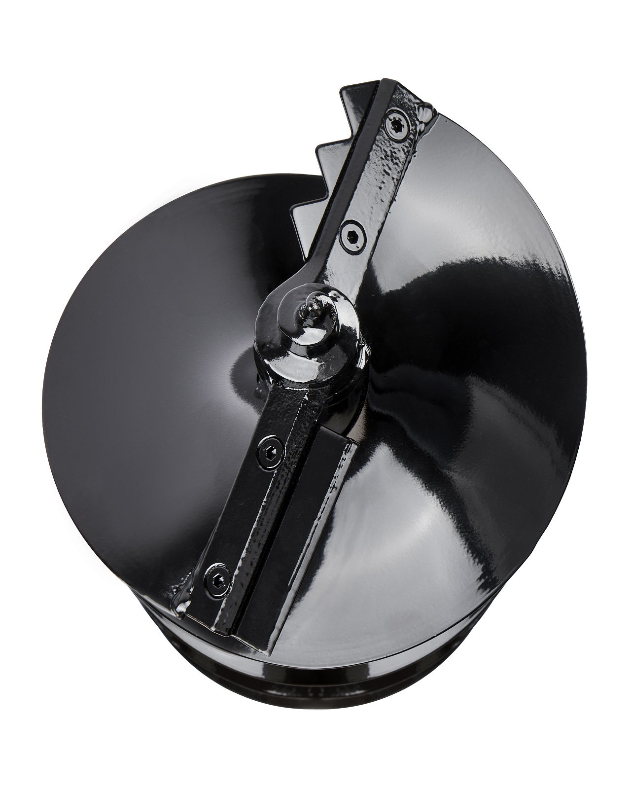 Двухзаходный шнек с двумя спиралями увеличивает объем вынимаемого грунта – то есть в два раза повышается производительность работы по сравнению с однозаходной конструкцией.Толщина металла спирали – 2 мм. Усиленный винтовой полнотелый наконечник центрирует шнек в намеченной точке. Рассчитан на сложные грунты с включениями из камней и корней.