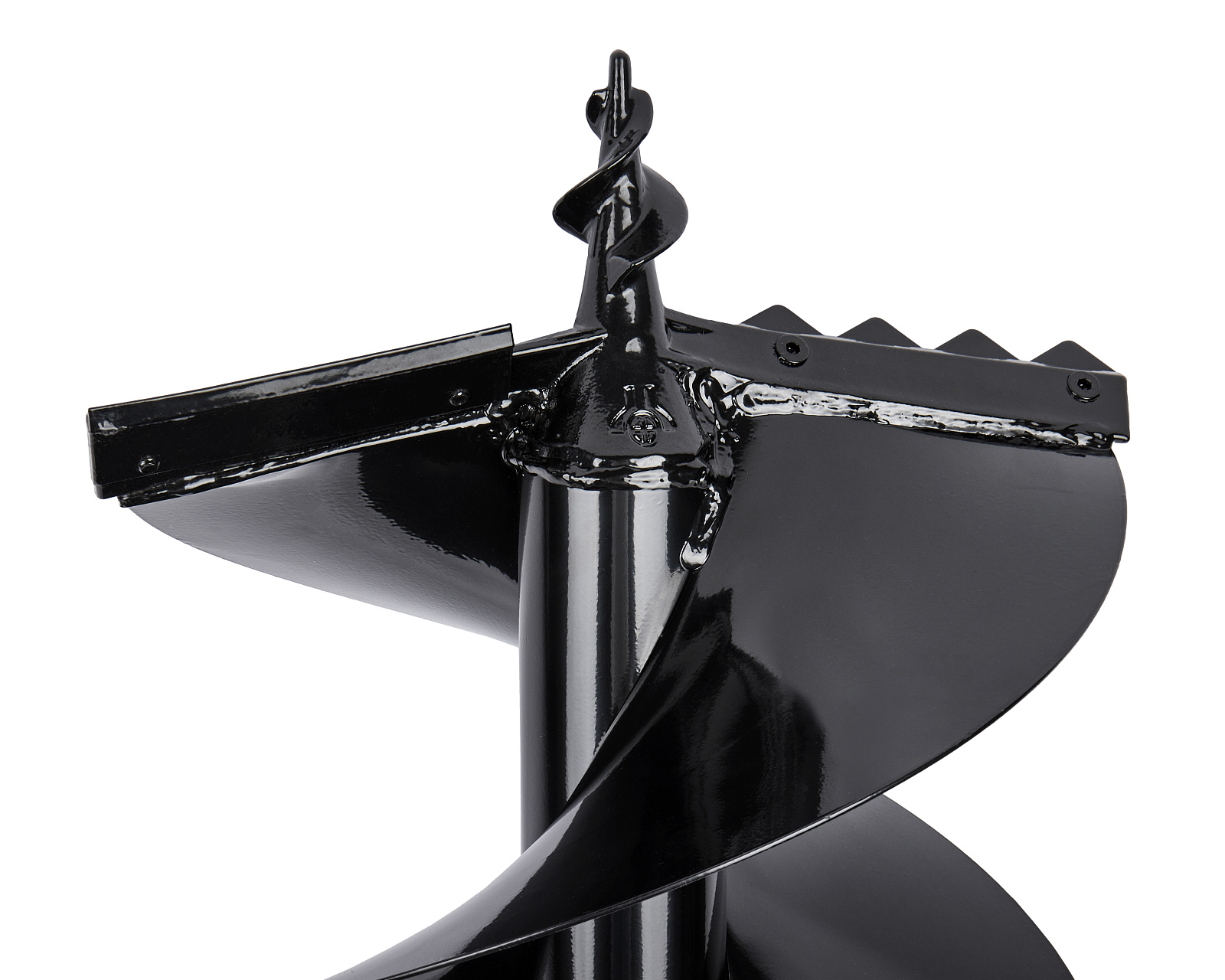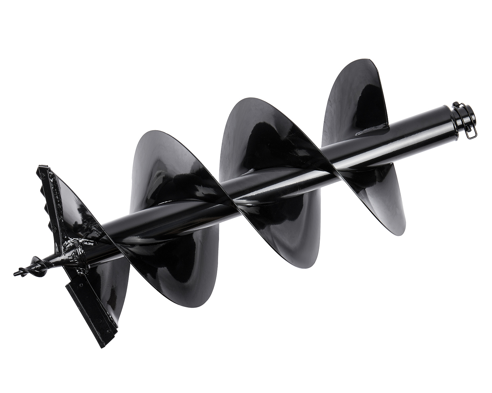 Двухзаходный шнек с двумя спиралями увеличивает объем вынимаемого грунта – то есть в два раза повышается производительность работы по сравнению с однозаходной конструкцией.Толщина металла спирали – 2 мм. Усиленный винтовой полнотелый наконечник центрирует шнек в намеченной точке. Рассчитан на сложные грунты с включениями из камней и корней.