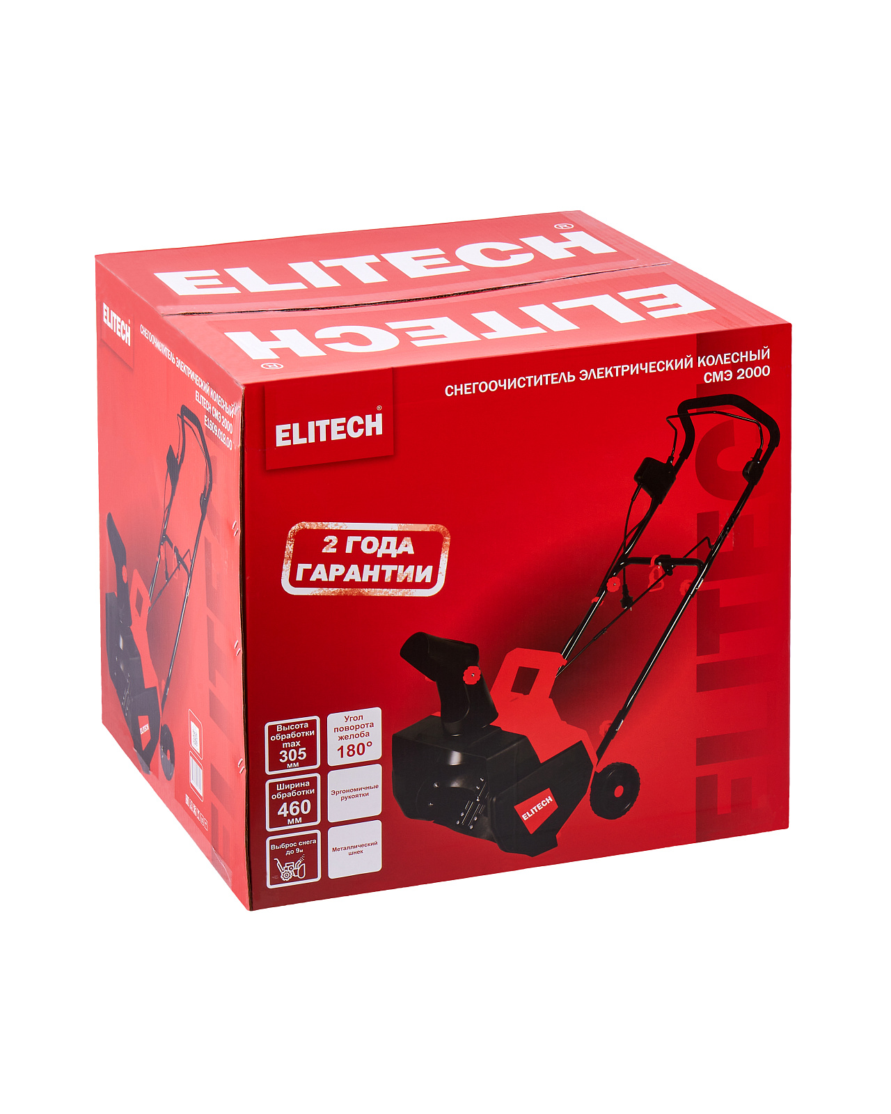Колесный электрический снегоочиститель мощностью 2000 Вт с шириной обработки 460 мм и высотой 305 мм, предназначен для уборки свежевыпавшего снега с ровных и твердых поверхностей. Снегоочиститель оснащен шнеком из армированной резины.