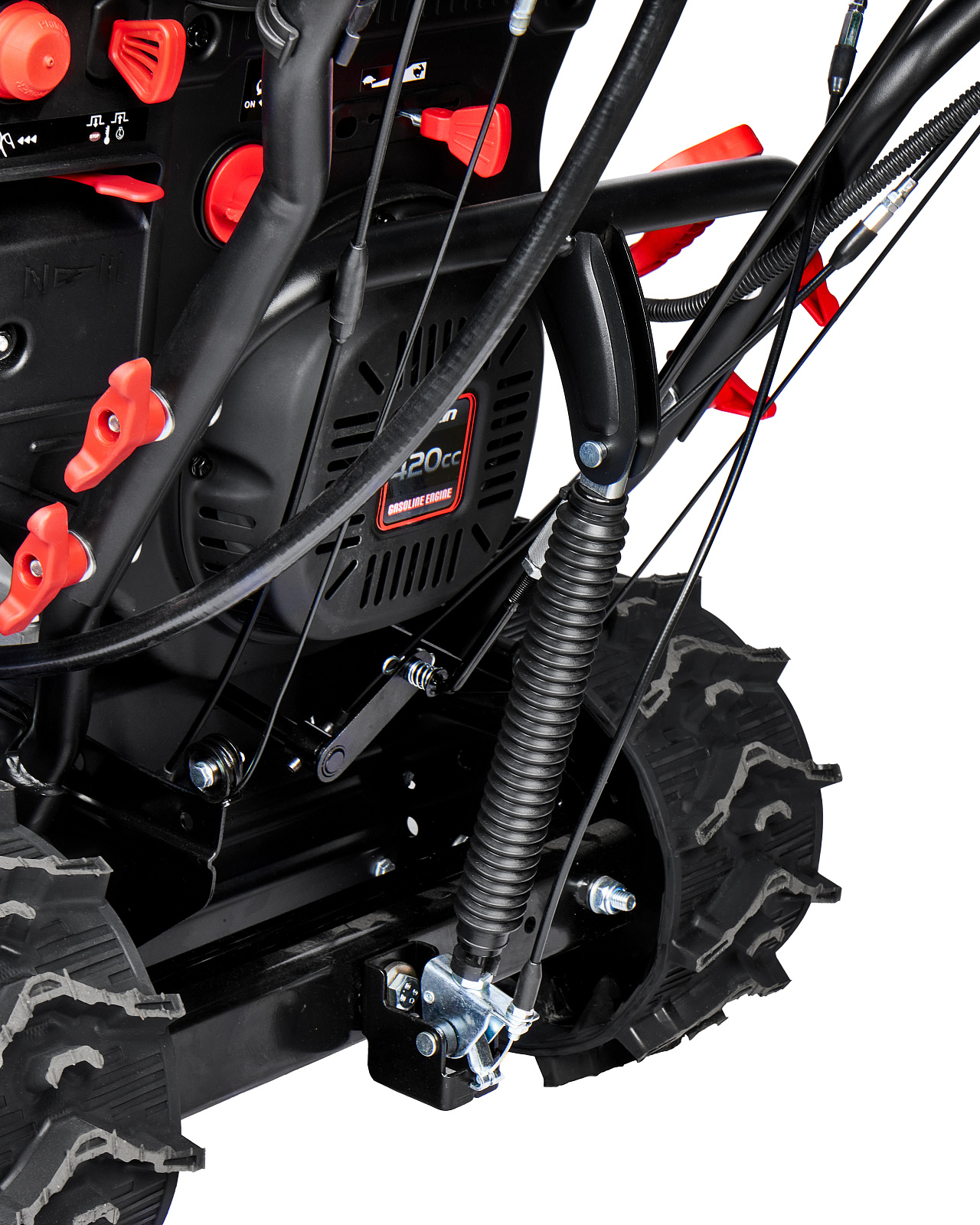 Гусеничный бензиновый снегоочиститель мощностью 9,1 кВт с шириной обработки 760 мм и высотой 545 мм предназначен для уборки свежевыпавшего снега с ровных и твердых поверхностей, с соблюдением правил технической безопасности и инструкций по эксплуатации данной машины.