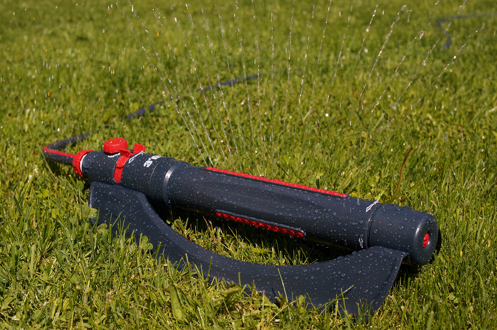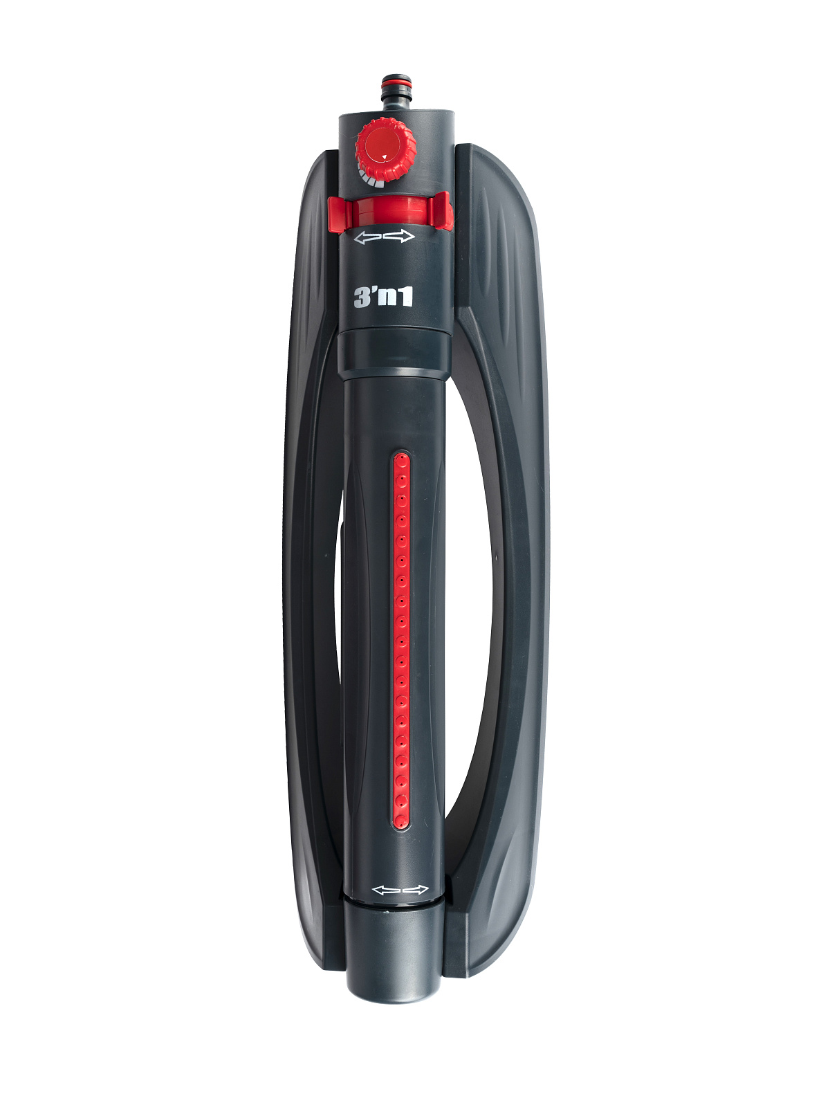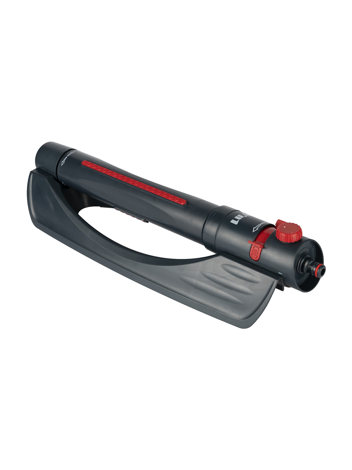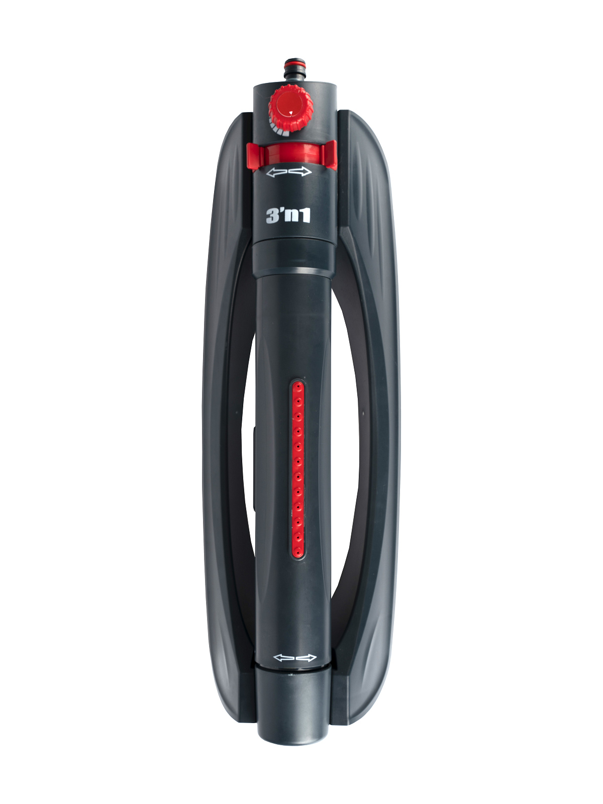Дождеватель с регулятором напора осуществляет орошение водой площади до 280 м2 и разбрызгивает поток вертикально вверх или вращаясь в диапазоне 180 градусов.