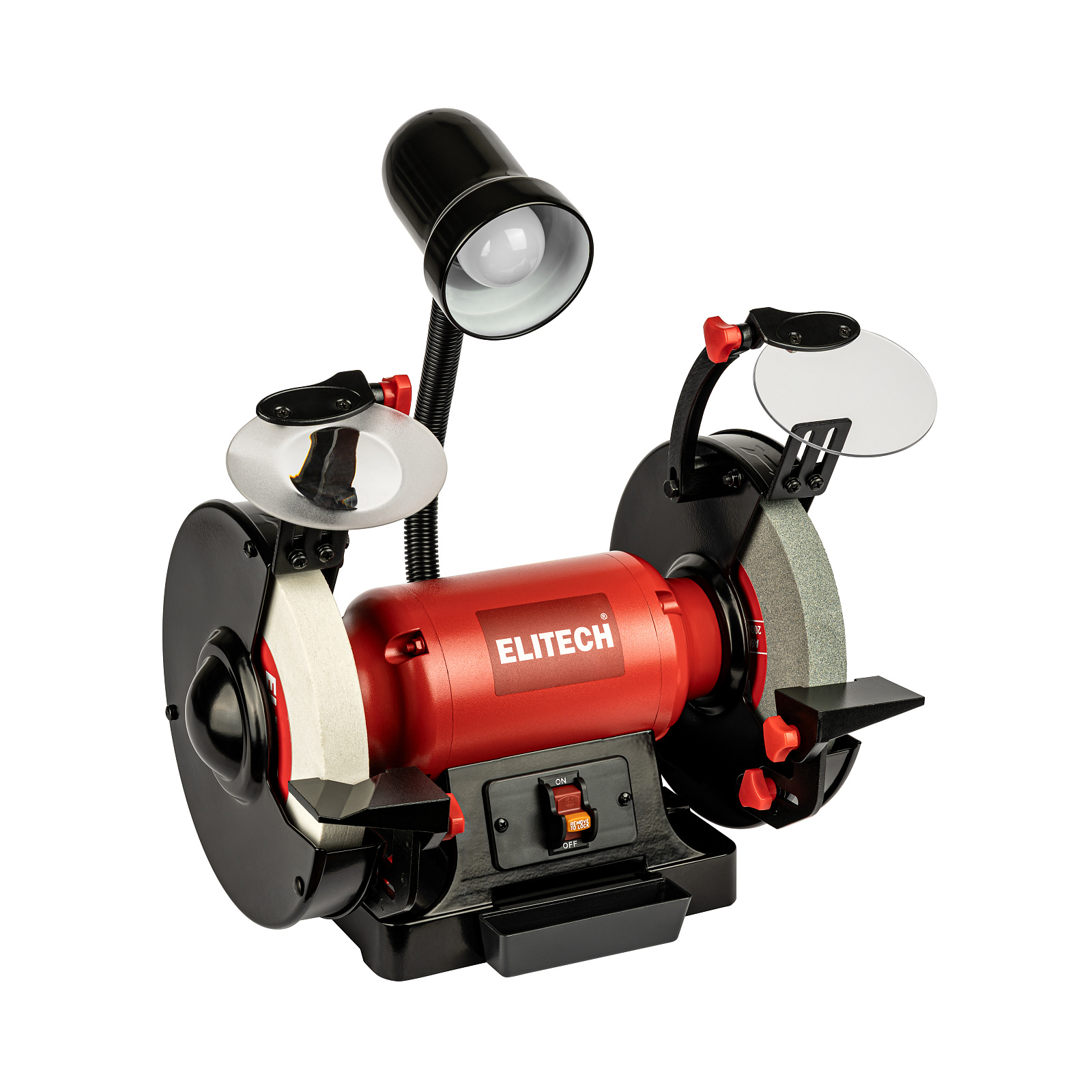 Перед кругами установлены регулируемые упоры для обрабатываемых предметов с пазом для заточки сверл. Открытая часть кругов имеет защиту в виде регулируемого прозрачного экрана, что позволяет защитить пользователя от искр и осколков при работе. В станине имеются отверстия для крепления станка к верстаку или столу.