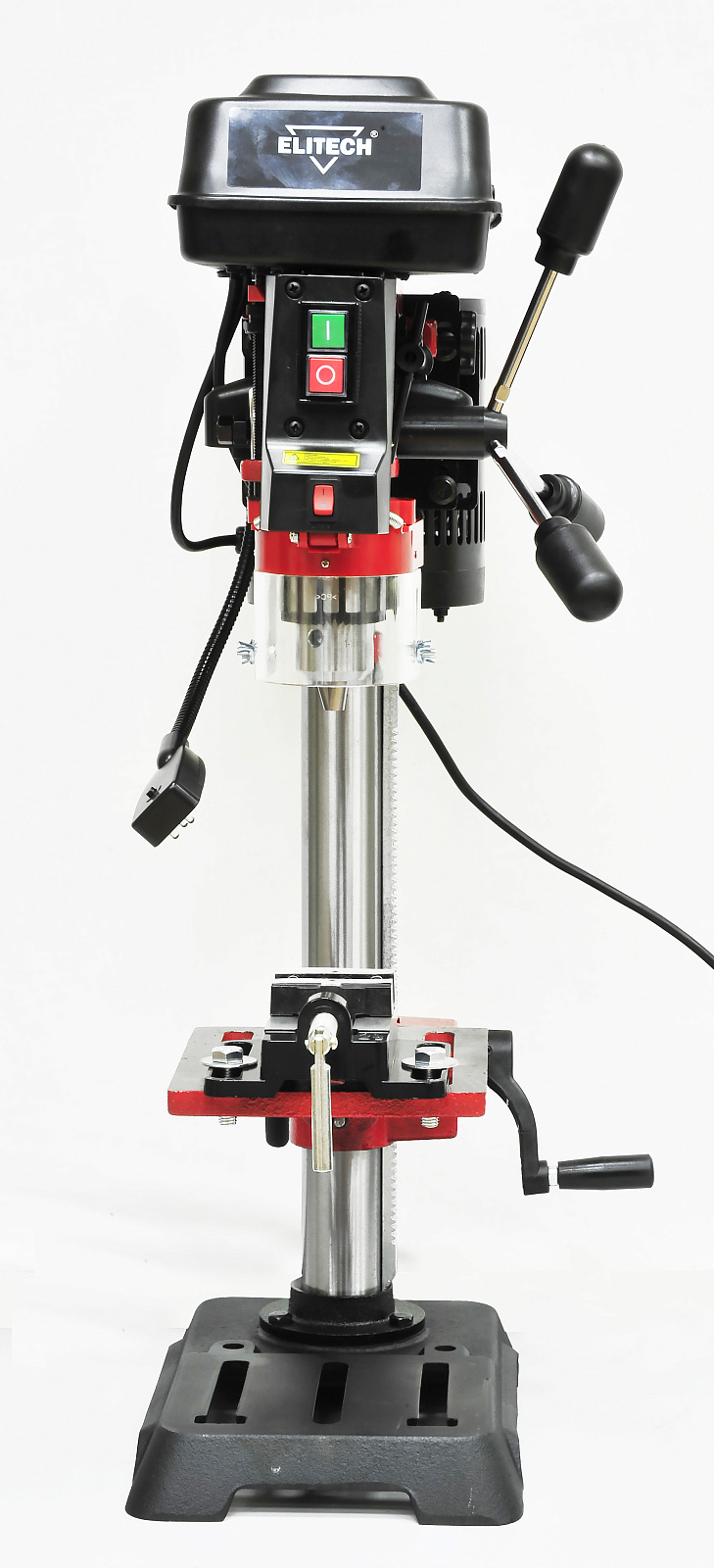 Сверлильный станок мощностью 550 Вт, скоростью вращения шпинделя 290-2508 об/мин и размерами стола 194х165 мм, предназначен для обработки различный материалов (металл, дерево, пластмасса и т.д.) вращающимся сверлильным или шлифующим инструментом (с возможностью осевого перемещения).