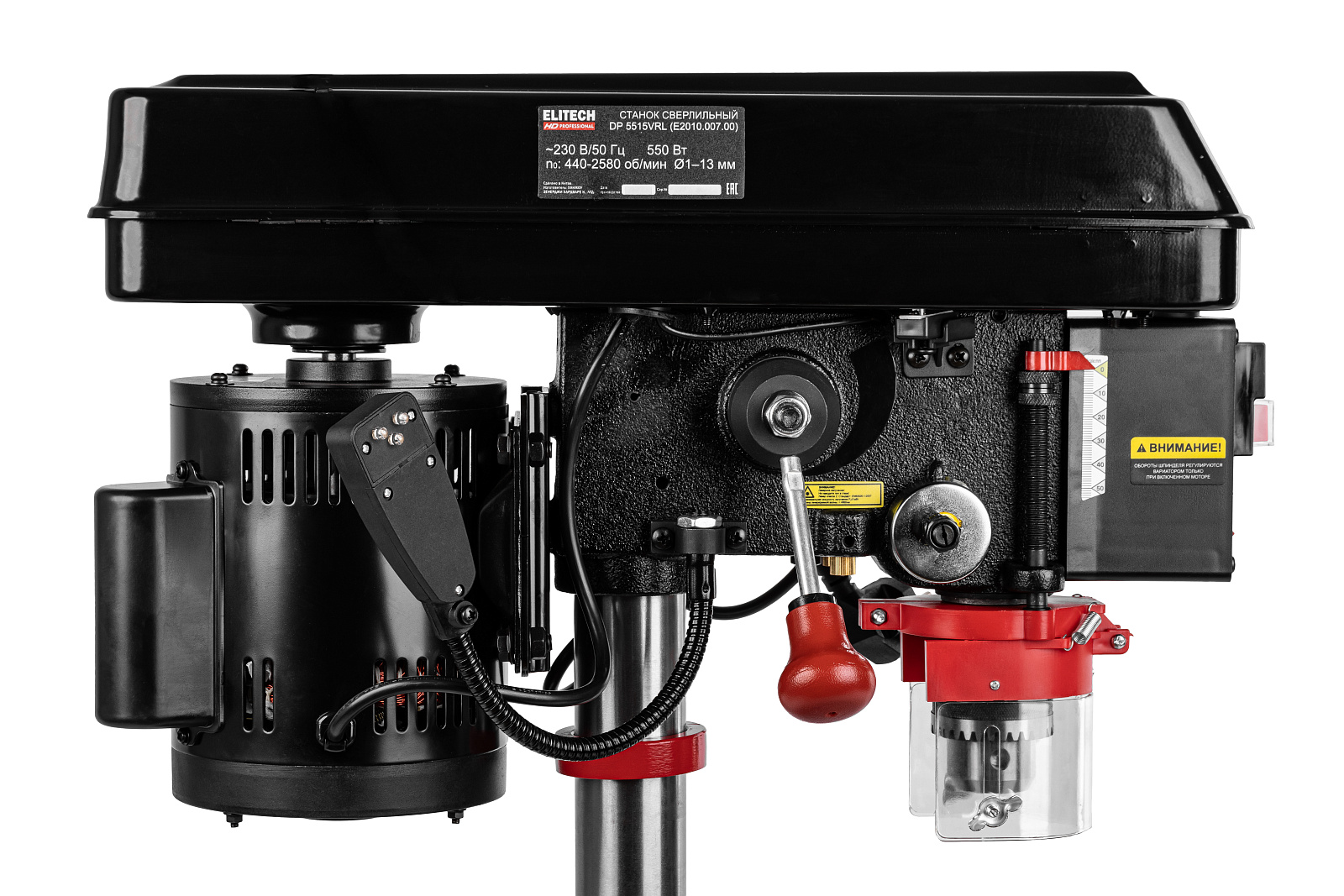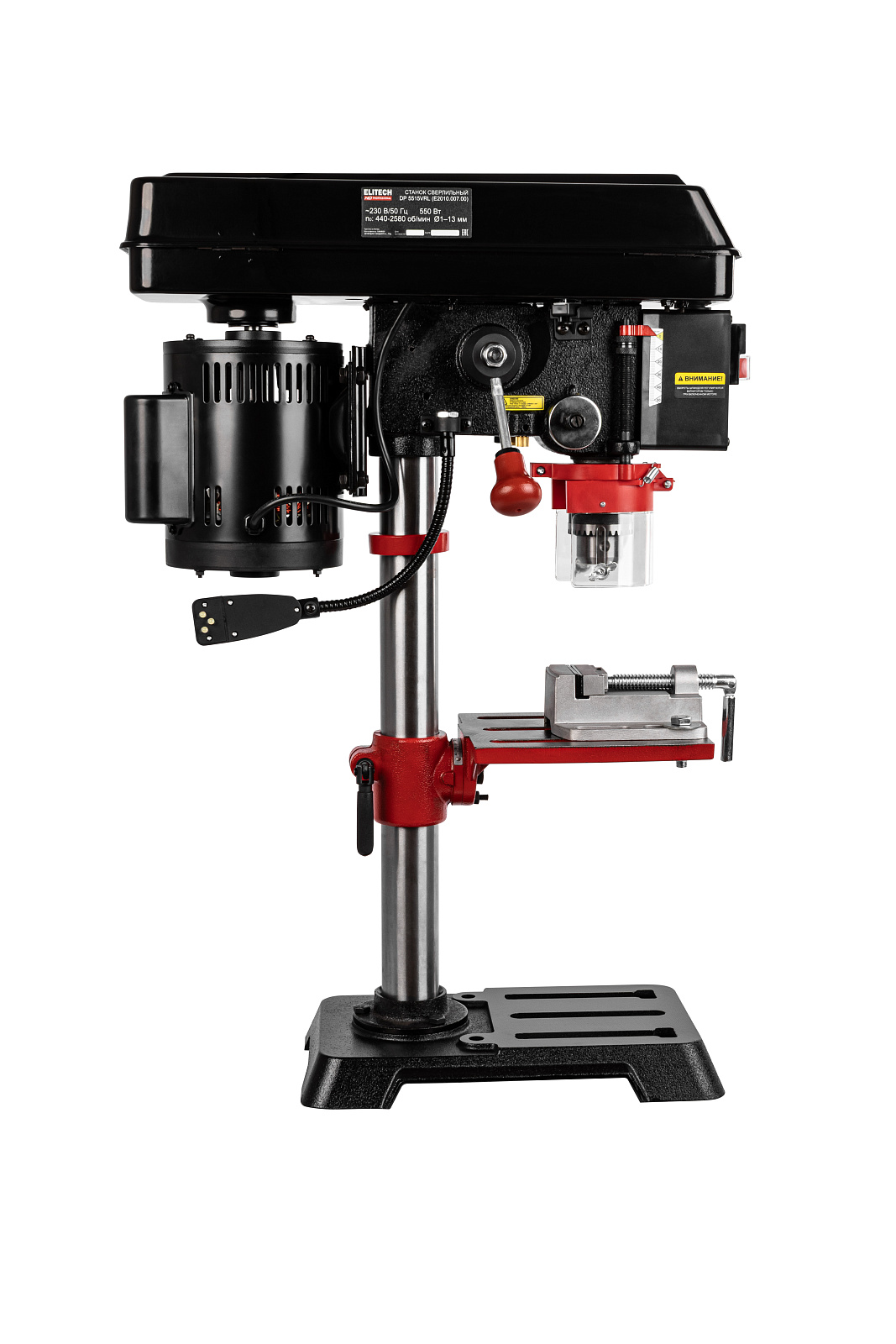 Станок сверлильный «ELITECH» мощностью 550 Вт и ходом шпинделя 50 мм, предназначен для обработки различных материалов (металл, дерево, пластмасса и т.д.) вращающимся сверлильным или шлифующим инструментом (с возможностью осевого перемещения).
