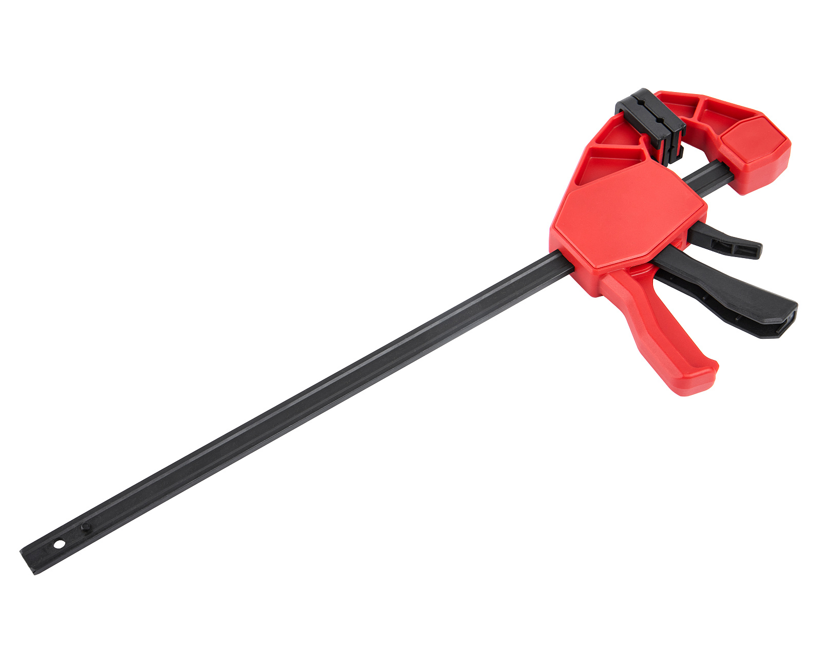Быстрозажимная реечная струбцина максимальной шириной 300 мм и усилием сжатия 800 Н, с профильными губками, используется для удобной и быстрой фиксации между собой деталей и заготовок. Может также использоваться как распорка.