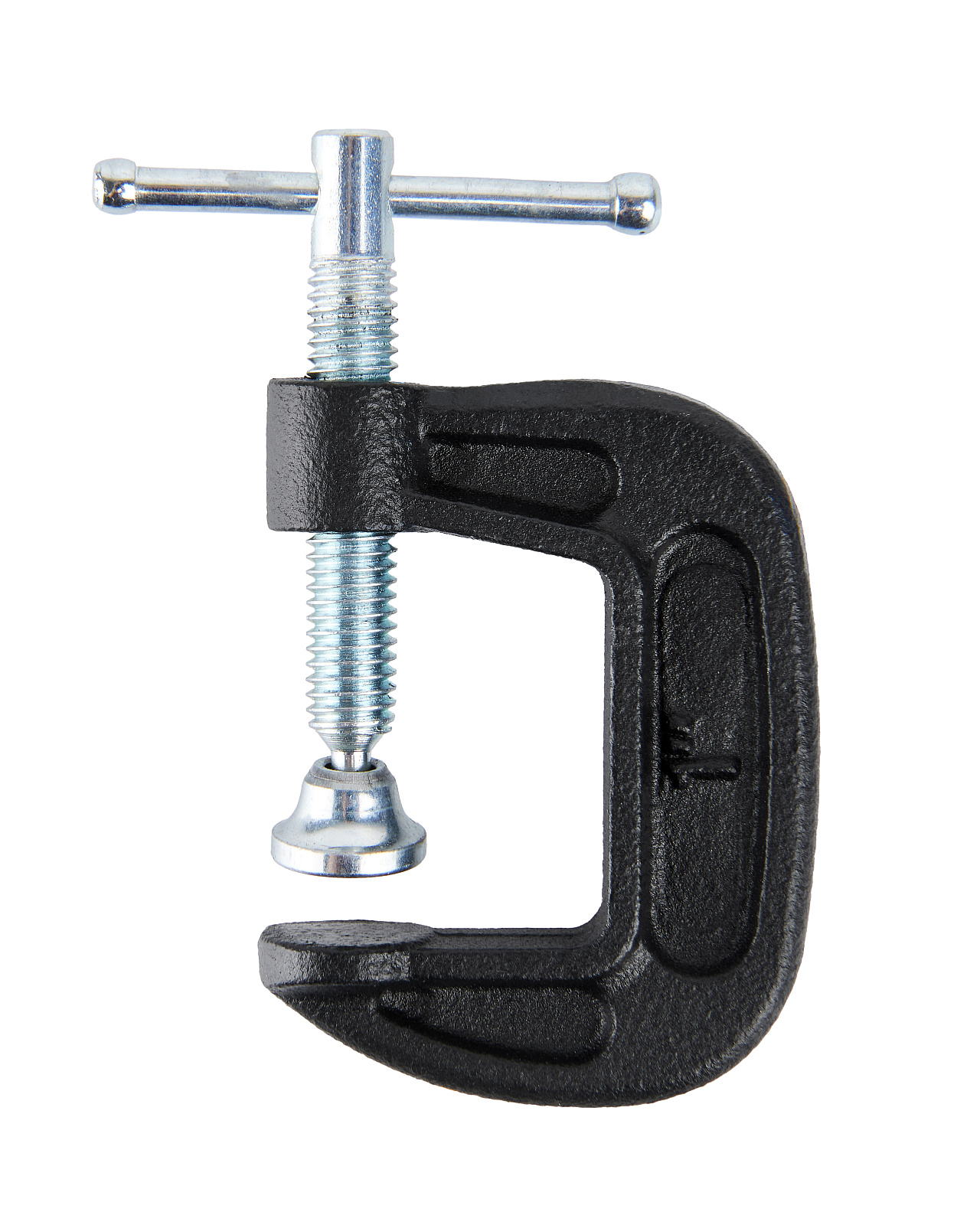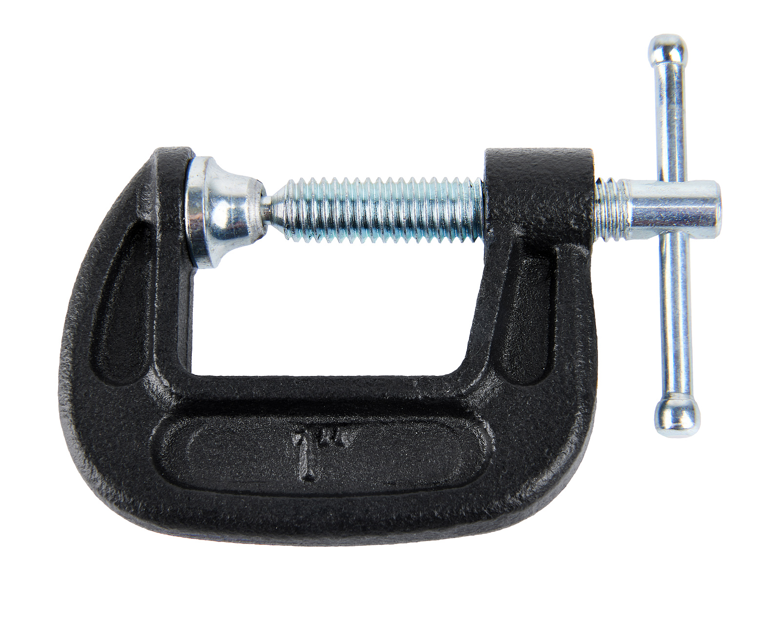 G-образная литая струбцина 25х20 мм из высокопрочного чугуна со стальным винтом и подвижной опорной пяткой, используется для усиленной фиксации деталей и заготовок.