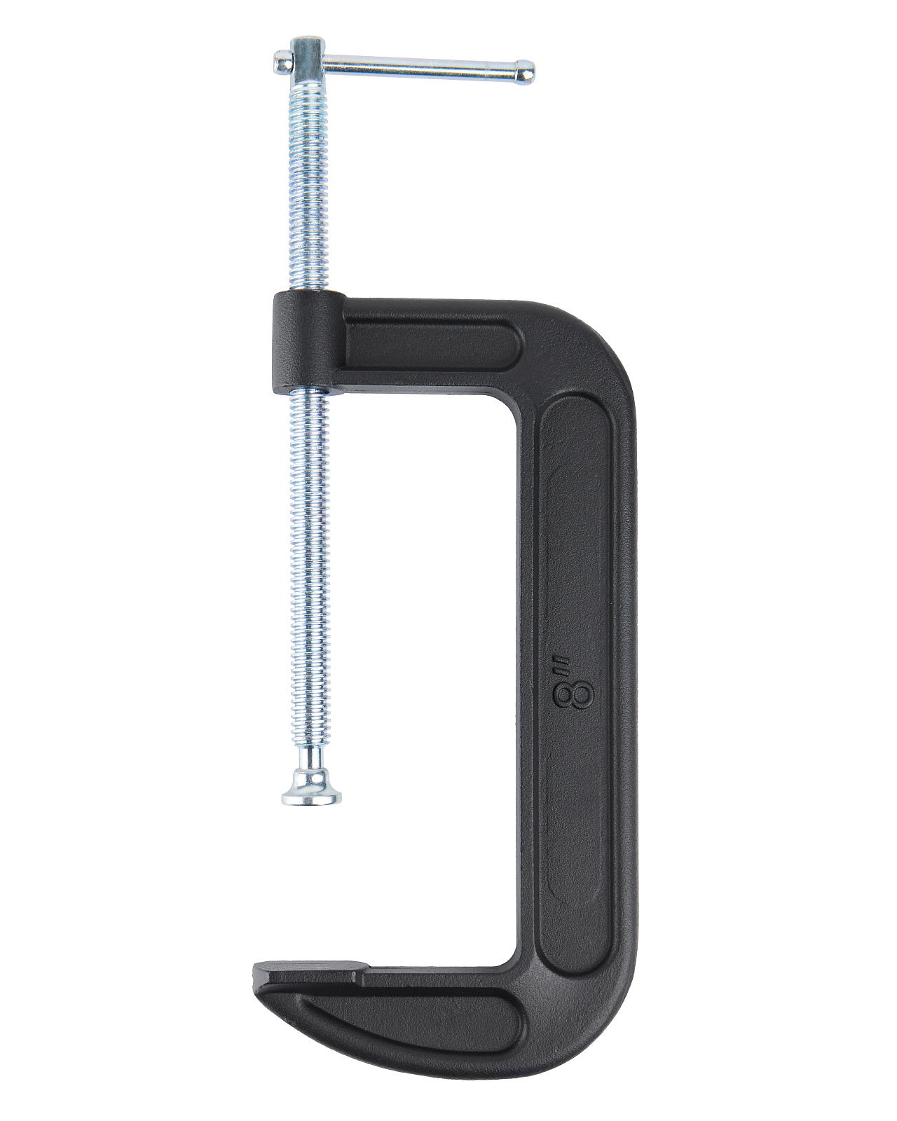 Струбцина G-типа применяется, когда нужно сжать детали между собой с повышенным усилием – от 200 кг до 1 тонны. Но следует помнить, что G-струбцины все же слабее тисков, и поэтому не следует прилагать чрезмерную силу при затяжке винта, который нужно смазывать и поддерживать в чистоте.2 года