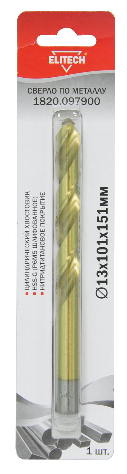 Сверло д\металла, HSS-G, нитридтитановое покрытие, хв-цилиндр, 13х101х151мм, 1шт, блистер