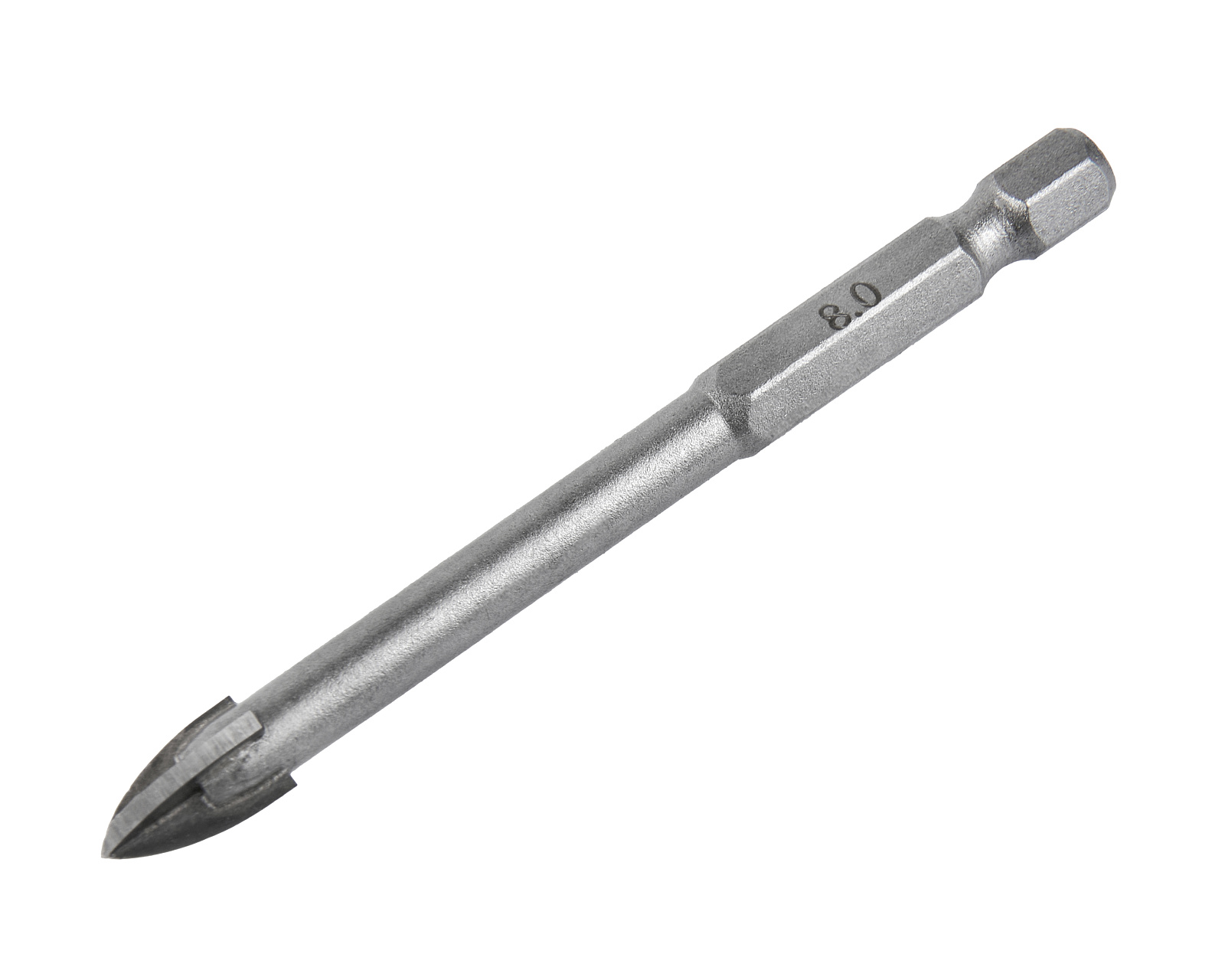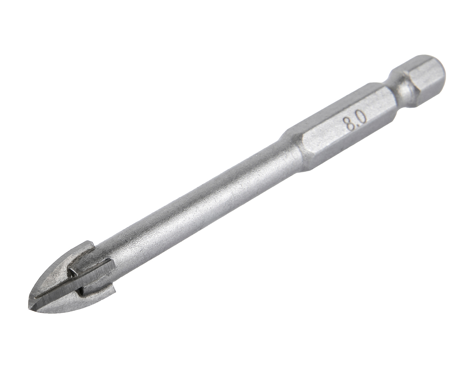 Для сверления отверстий в кафельной плитке и стекле используются сверла с твердосплавом крестовидной формы (в виде наконечника копья или стрелы) с острой кромкой.