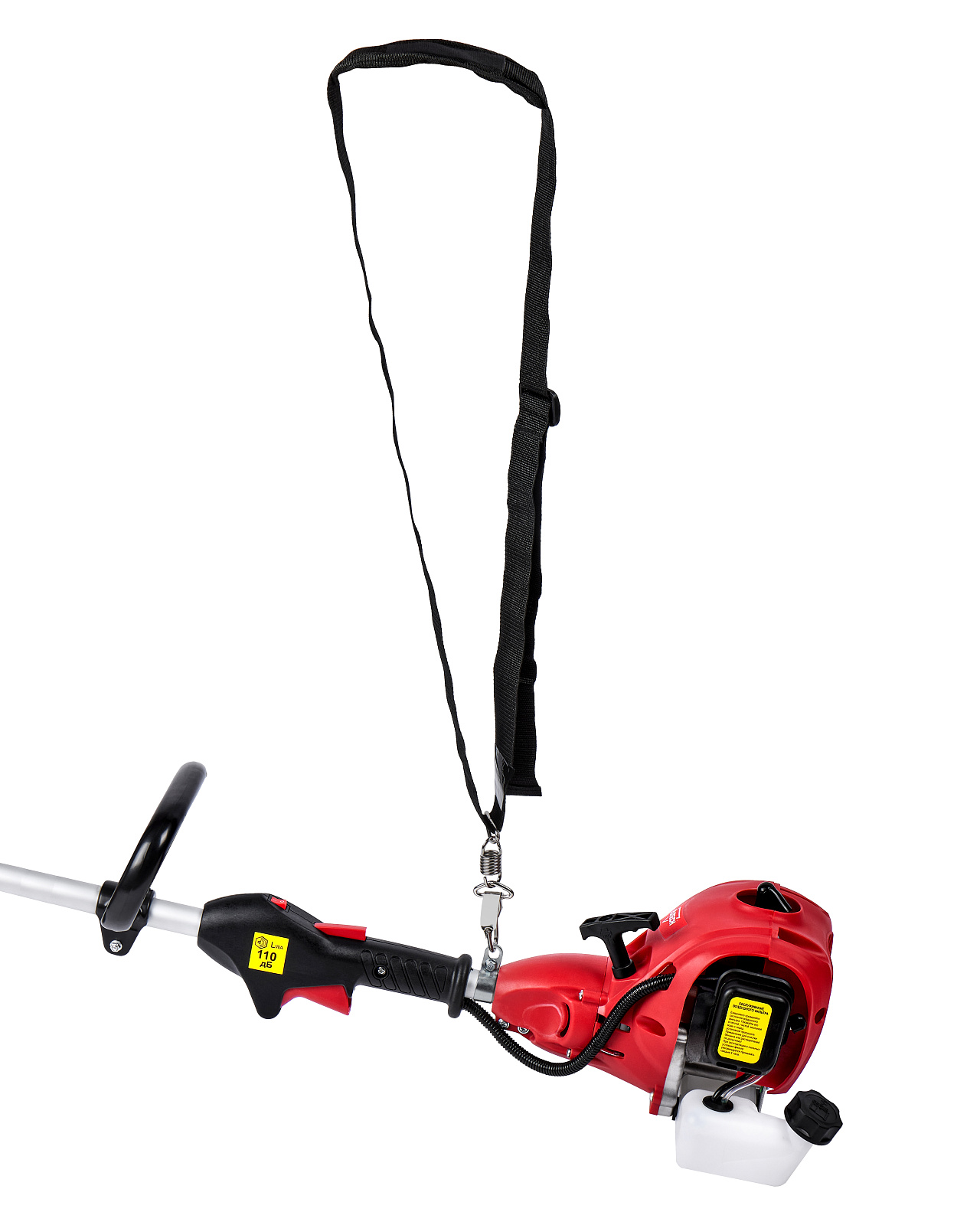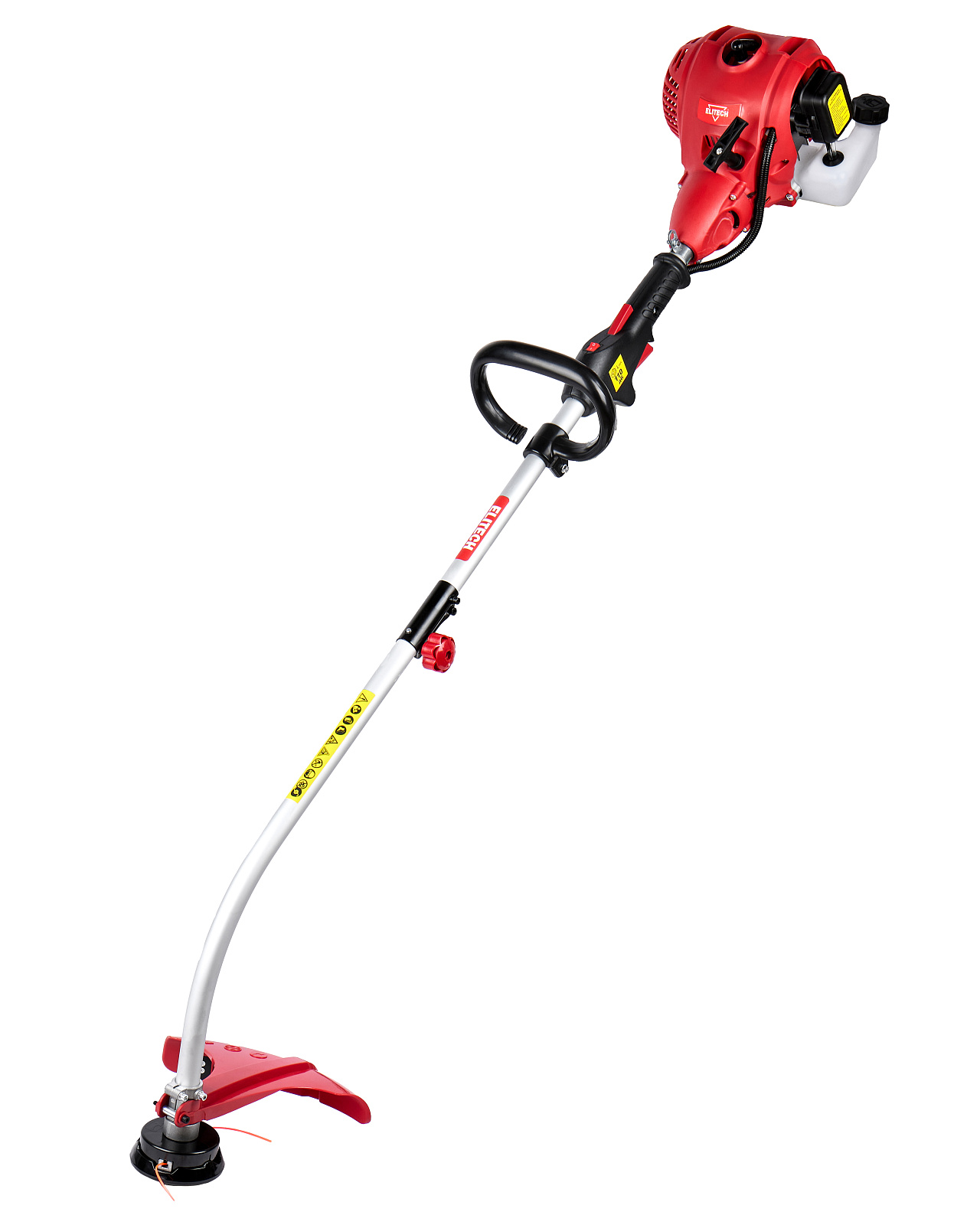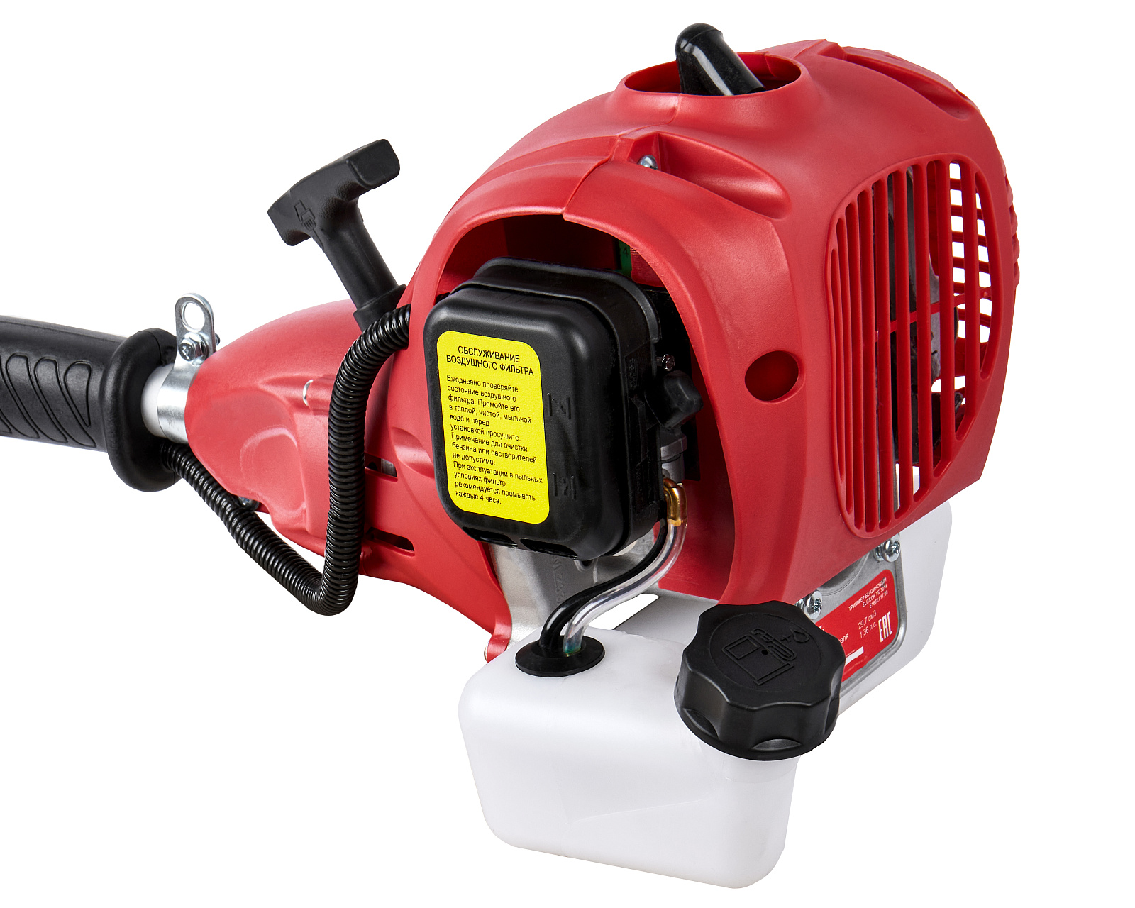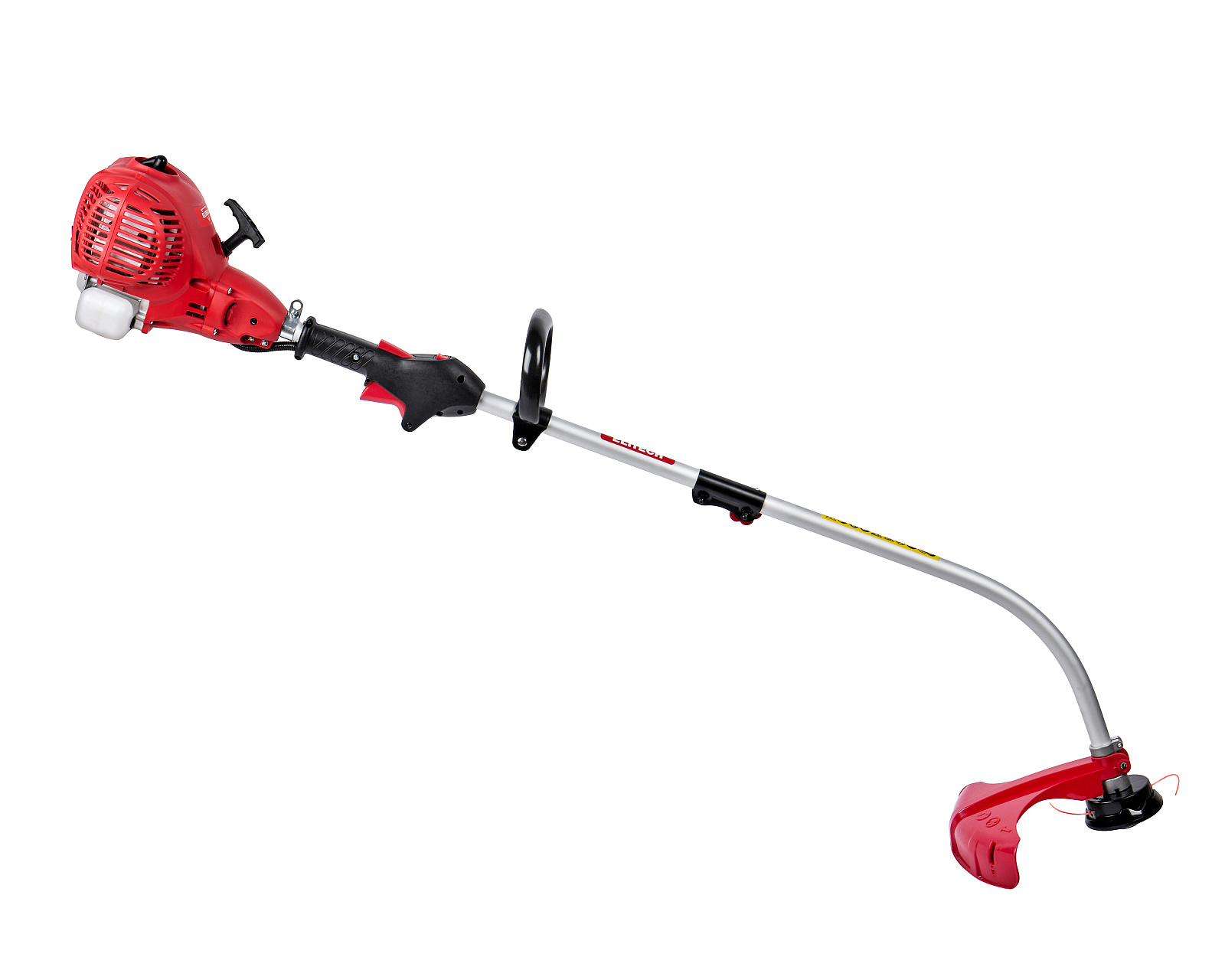 Бензиновый триммер для кошения травы леской (кордом 380 мм) с двухтактным двигателем мощностью 1,36 л.с. (1 кВт) выполнен с разборной штангой и петлевой рукояткой.