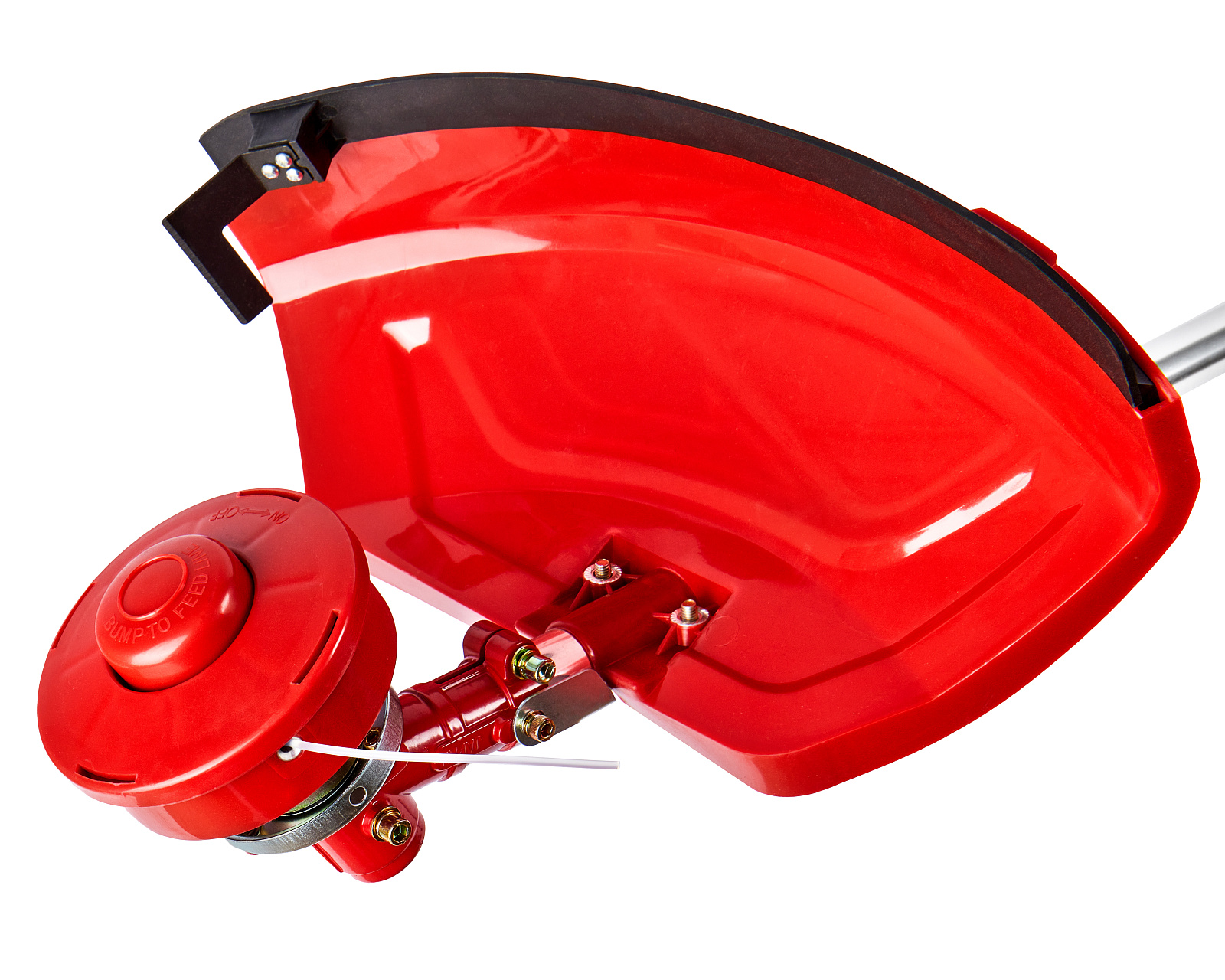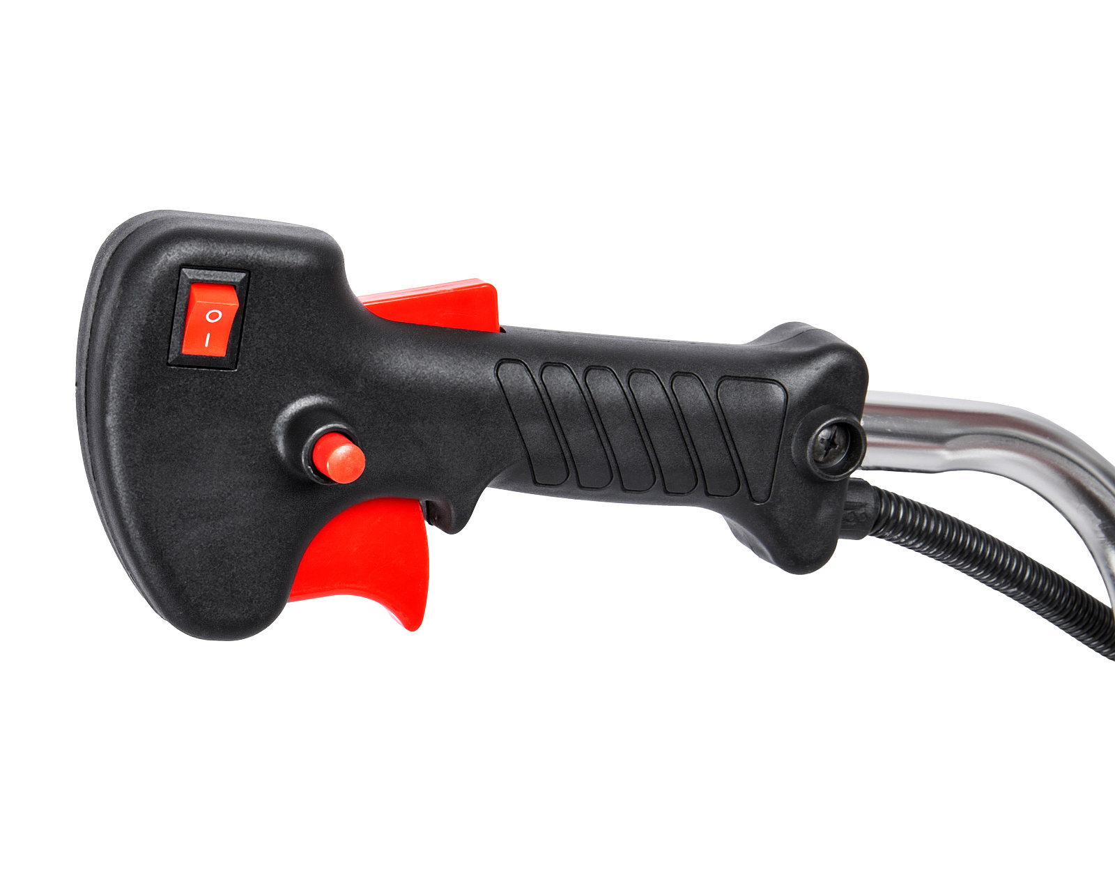 Бензиновый триммер для кошения травы леской (кордом 440 мм) и ножом (255 мм) с двухтактным двигателем мощностью 1,8 л.с. (1,32 кВт) выполнен с неразборной штангой.