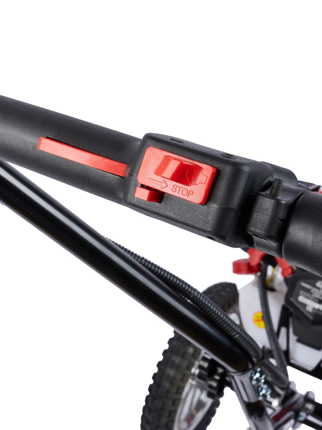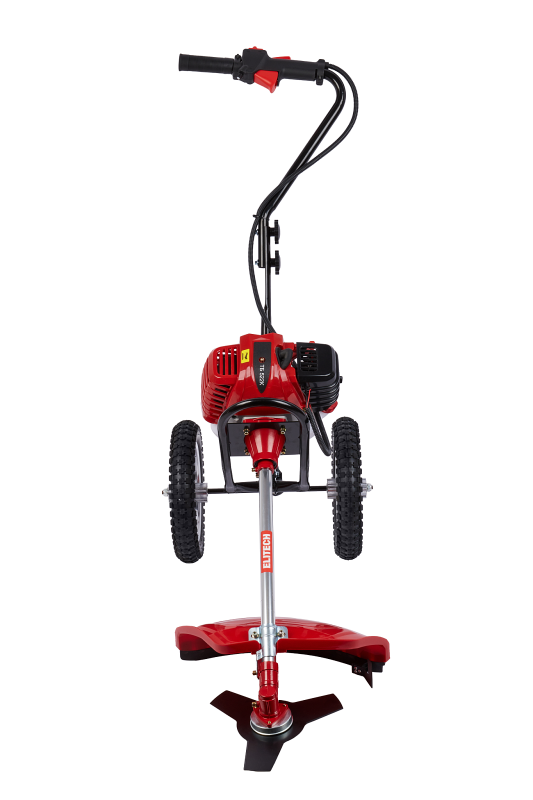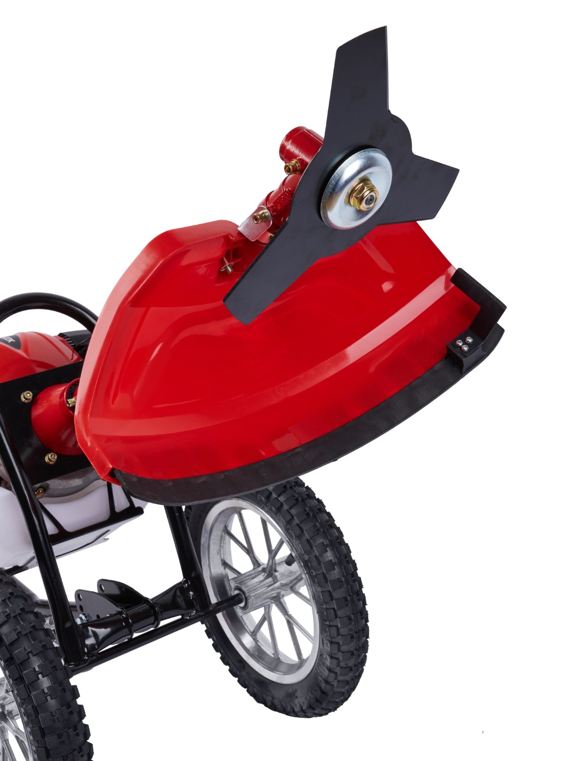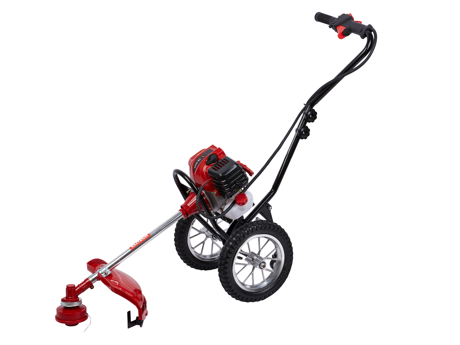 Двухколесный бензиновый триммер с 2-тактным двигателем мощностью 2,4 л.с. с полуавтоматической головкой для лески с шириной обработки 440 мм, используется для кошения, в том числе и переросшей травы на пересечённой местности, как на приусадебных и придомовых территориях, так и для использования специалистами служб благоустройства и озеленения в коммерческих целях.
