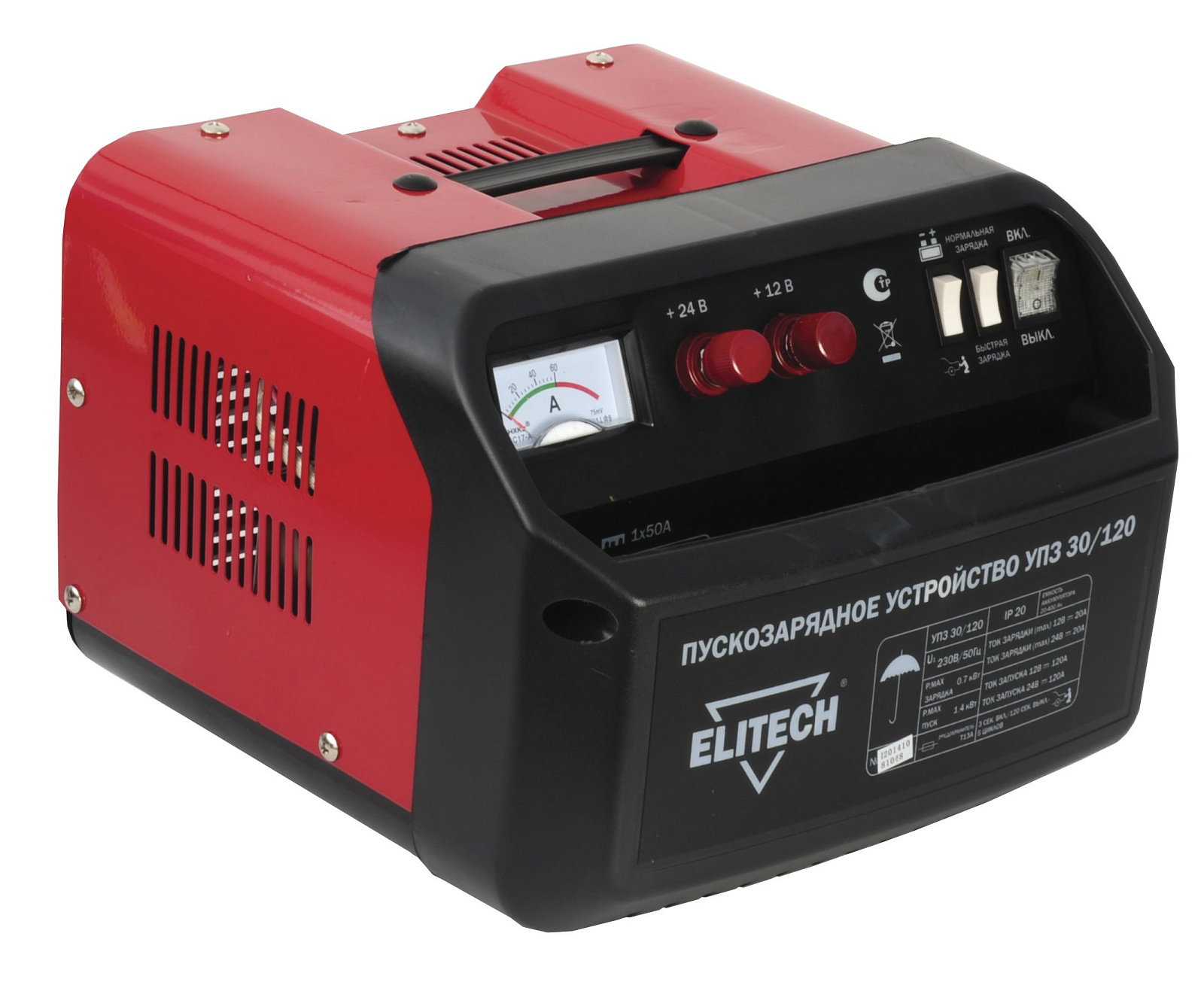 Пуско-зарядное устройство УПЗ 30/120 предназначено для зарядки автомобильных свинцово-кислотных батарей, напряжением 12 и 24 В, емкостью от 20 до 400 Ач. А также для запуска двигателя автомобиля током запуска 120 А при разрядившемся аккумуляторе.Преимущества