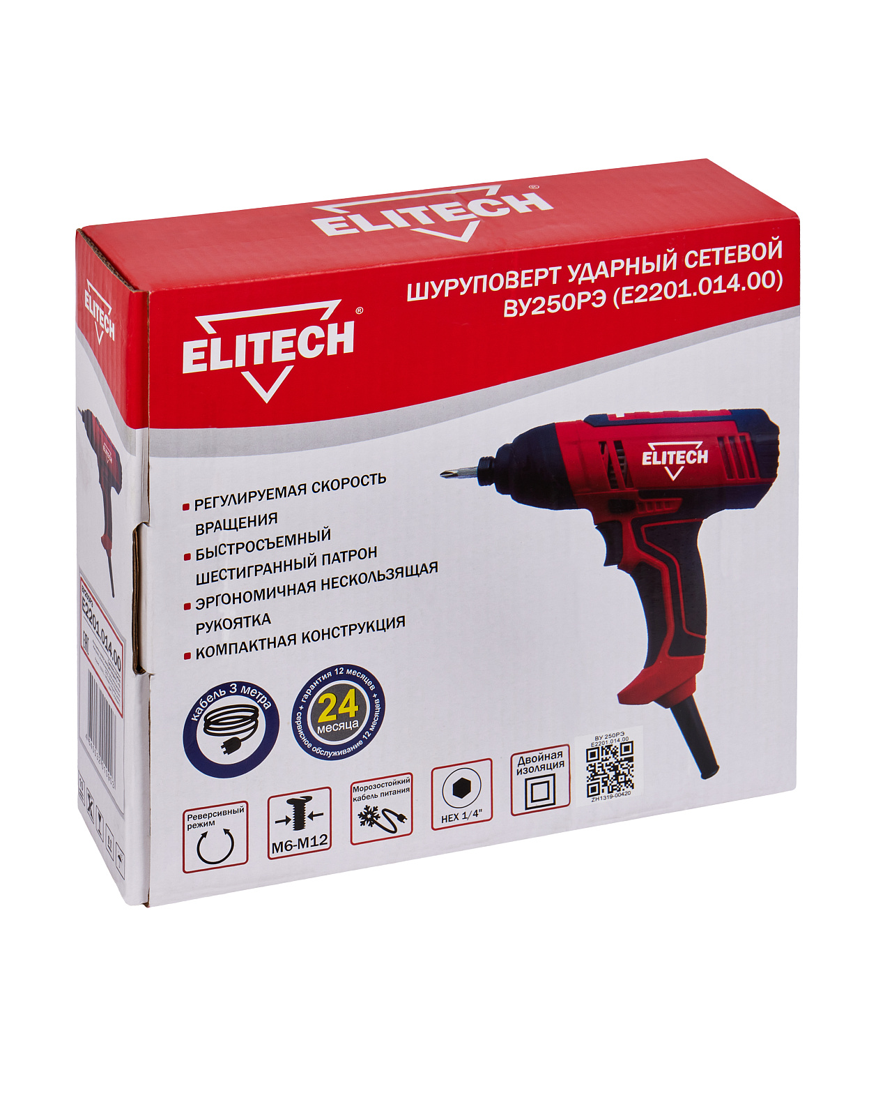 Винтоверт ударный ELITECH ВУ 250РЭ (E2201.014.00) предназначен для установки крепежа с использованием тангенциального удара для получения высокого крутящего момента (до 100 Нм).