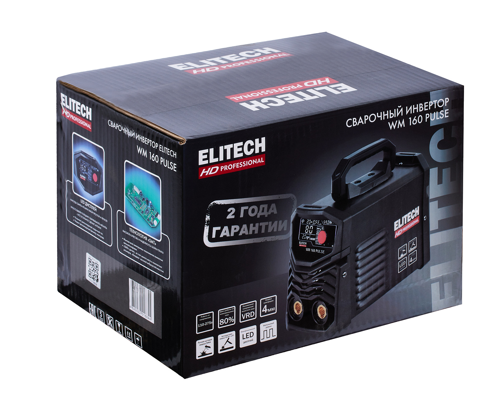 Сварочный инвертор ELITECH HD WM 160 PULSE осуществляет ручную дуговую сварку штучными плавящимися электродами (MMA), а также имеет возможность аргонодуговой сварки (TIG) на постоянном токе неплавящимся вольфрамовым электродом в среде защитного инертного газа – аргона (сварка только углеродистых и нержавеющих сталей).