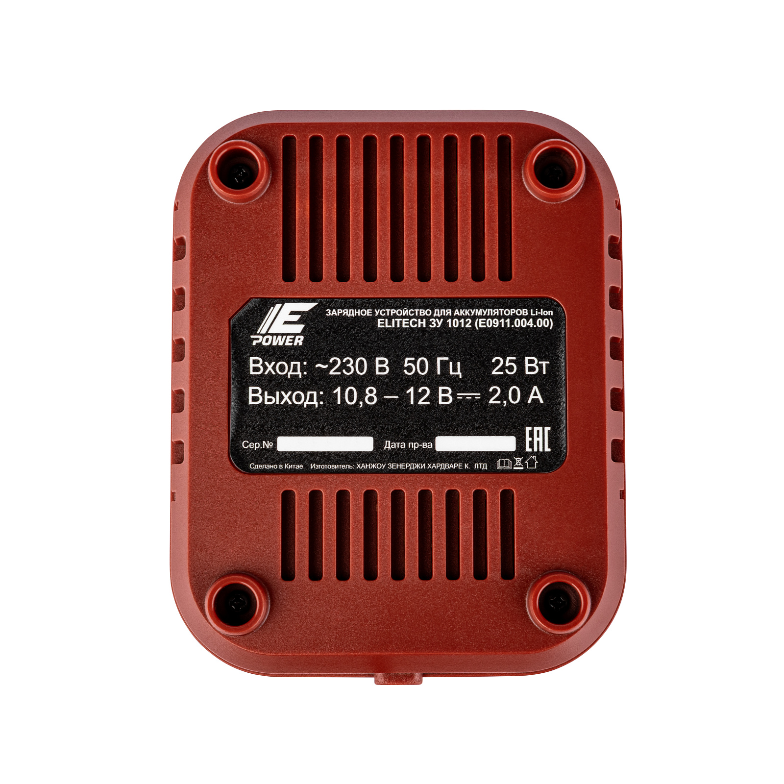 Зарядное устройство для Li-Ion аккумуляторов ELITECH напряжением 10,8 и 12 В слайдерной конструкции. Ток заряда 2,0 А.
