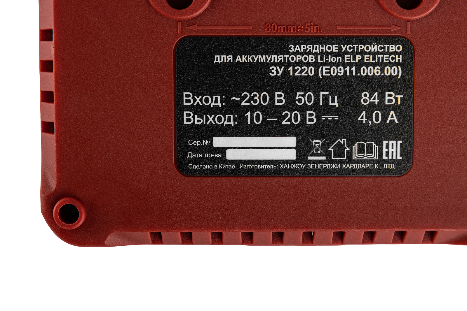 Зарядное устройство для Li-Ion аккумуляторов ELITECH напряжением 10-20 В слайдерной конструкции. Ток заряда 4 А.
